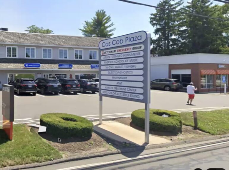 An existing free-standing tenant sign for Cos Cob Plaza encroaches on the state right of way and the motion to approve included a condition that it be relocated.