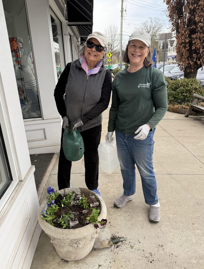 A truckload of flowers from Eden Farms in Stamford arrived early in the morning while sidewalks were clear, parking was free and the rain had passed. Awaiting the dozens of pansy flats was a group of seasoned GCOG gardeners, armed with trowels, spades and giant water jugs to transform the village into a springtime burst of colorful flowers, as they do each year to mark the changing seasons.