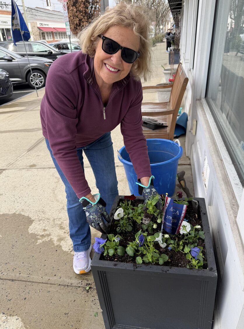 After a long, snowy winter, The Garden Club of Old Greenwich recently brought springtime cheer to Sound Beach Avenue downtown with new red, white and blue displays of hardy pansies to help commemorate our country’s 250th birthday.