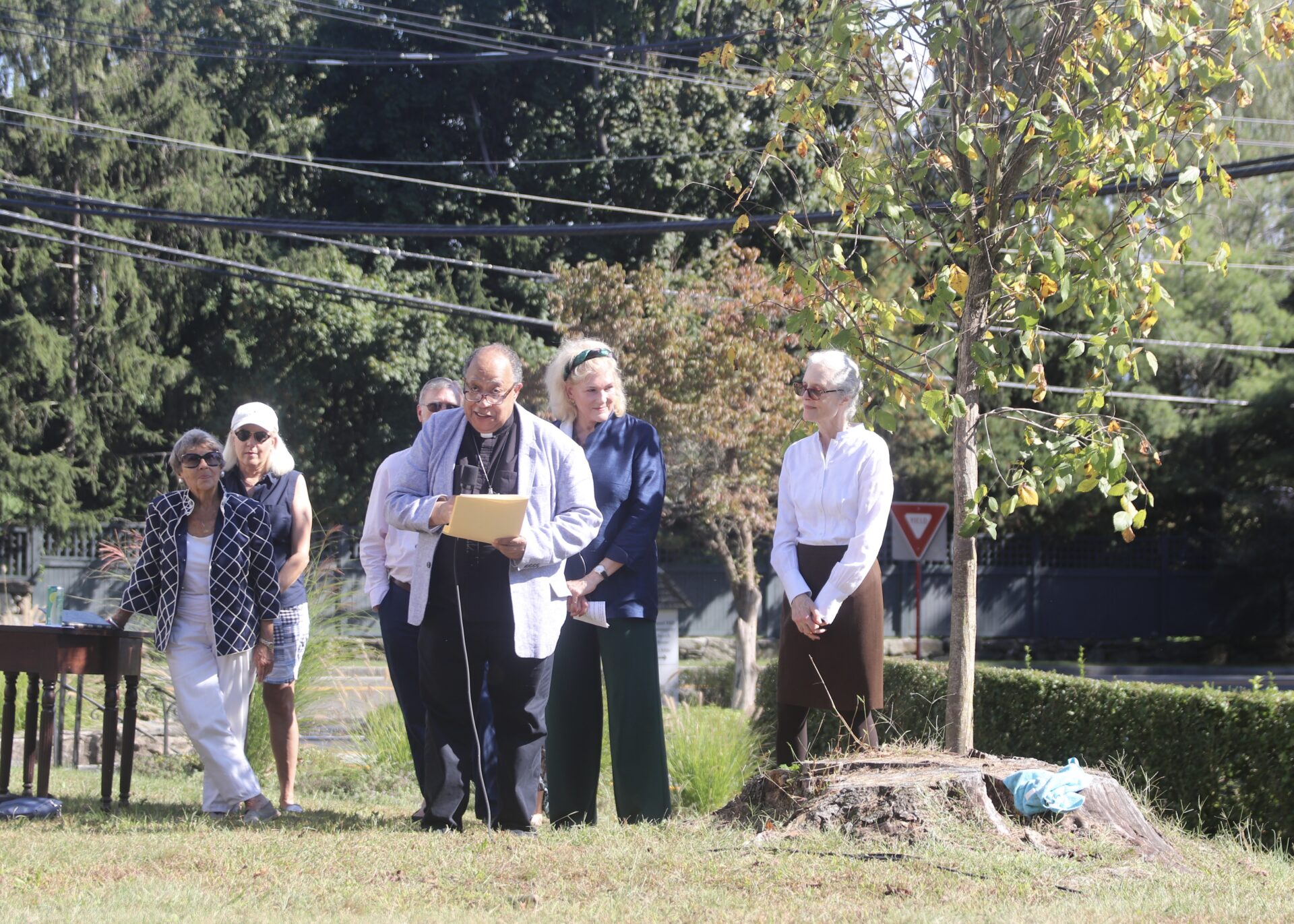 A group of about 50 people gathered at First Church of Round Hill in back country for the dedication of a newly planted tree in honor of John R. Conte Jr. Mr. Conte was president of Greenwich Tree Conservancy when he died unexpectedly on April 22, 2025.