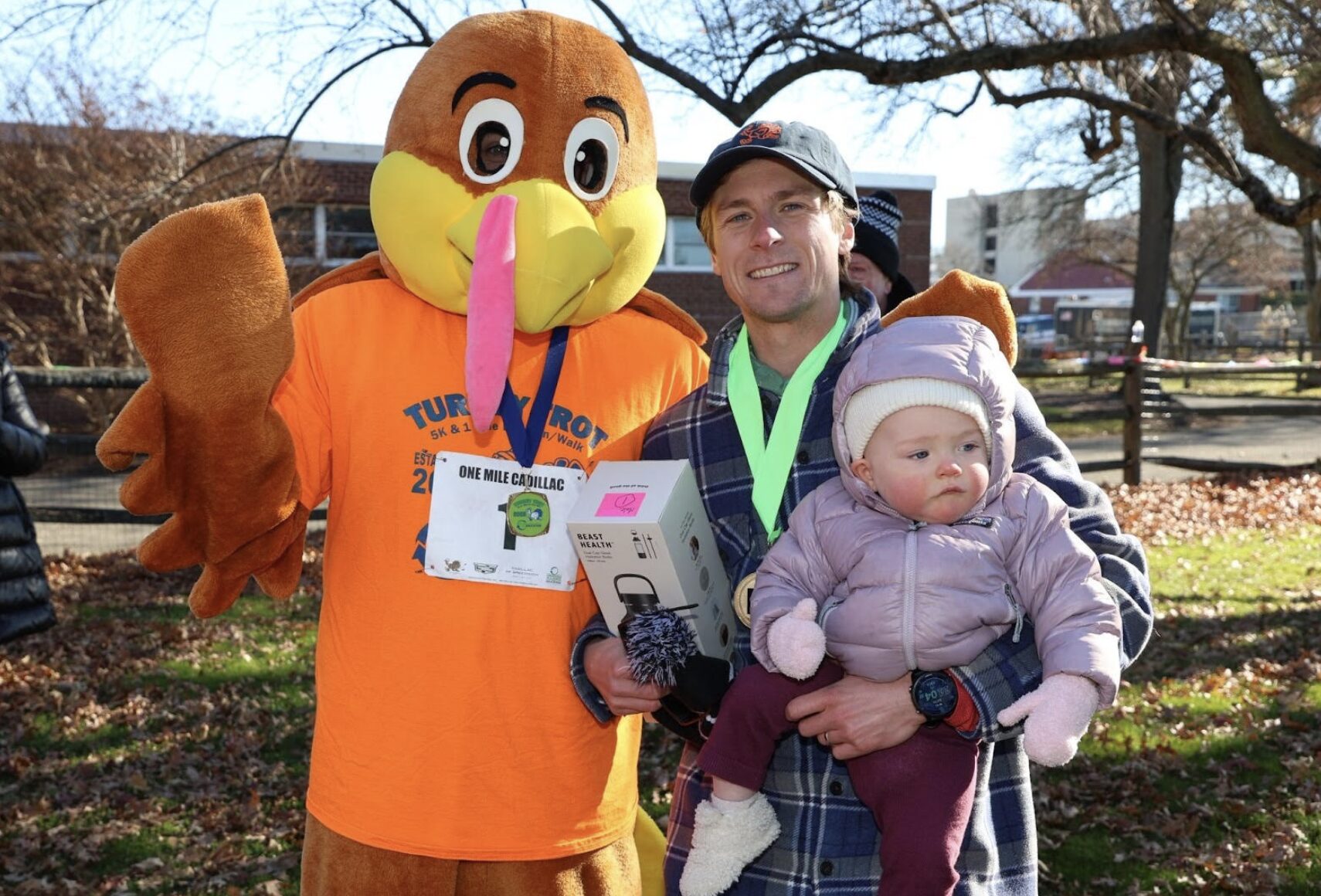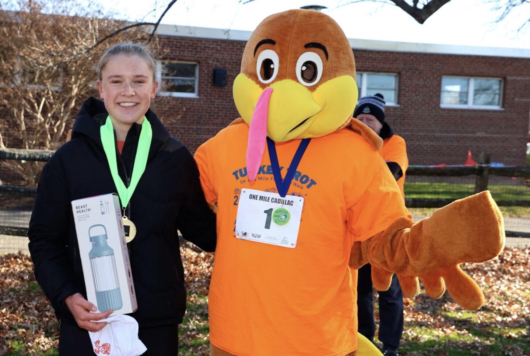 The Turkey Trot once again celebrated athletic achievement across all age groups. In the 5K, top male and female overall finishers (Kyle Grieve, Riverside, CT, 15:20.3; and Zara Geddes, Greenwich, CT, 18:36.2, respectively) were recognized. In the 1 Mile, Owen Harvey (from Greenwich Country Day School) and Sadie Mayhall (from Eastern Middle School) were the first male and female finishers.