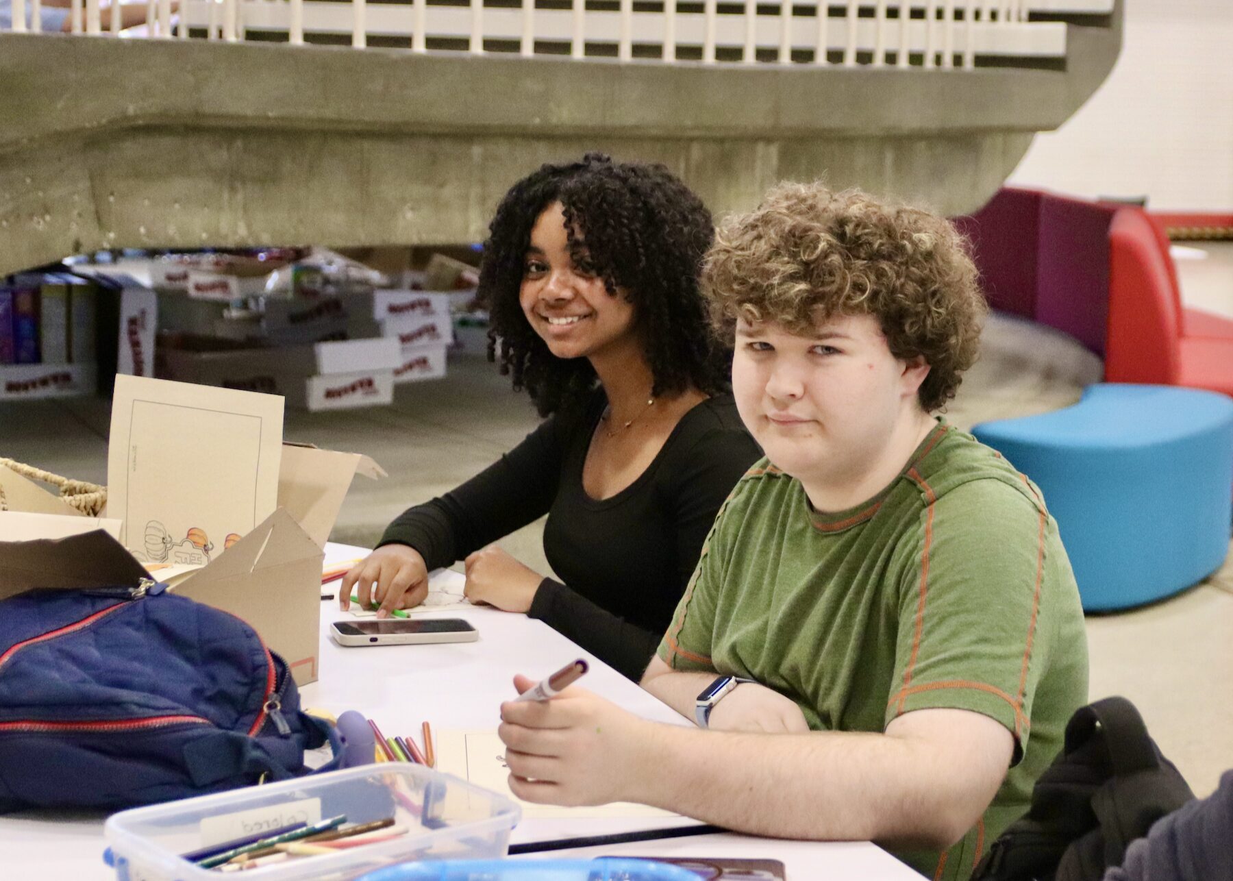 Greenwich High School Roots & Shoots club members created cards that will be attached to Thanksgiving baskets delivered to local families. Nov 10, 2025 Photo: Leslie Yager