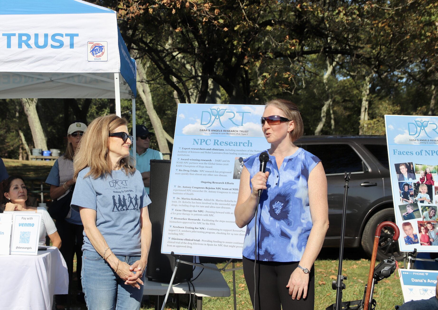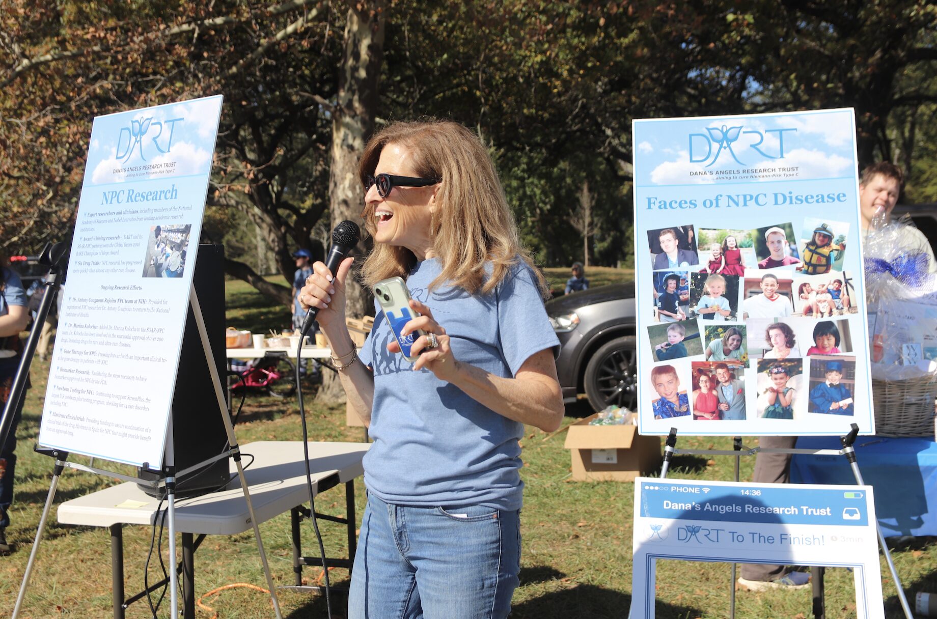Before people set out on Saturday’s walk, Dr. Cristin Davidson, a NPC researcher in the Maryland area, explained to the crowd that DART supports investigation of new small molecules to treat Niemann-Pick Type C disease, discovery and validation of biomarkers to facilitate clinical trials, provide additional data to support efficacy of therapeutics, and gene therapy to treat the root cause of the disease.