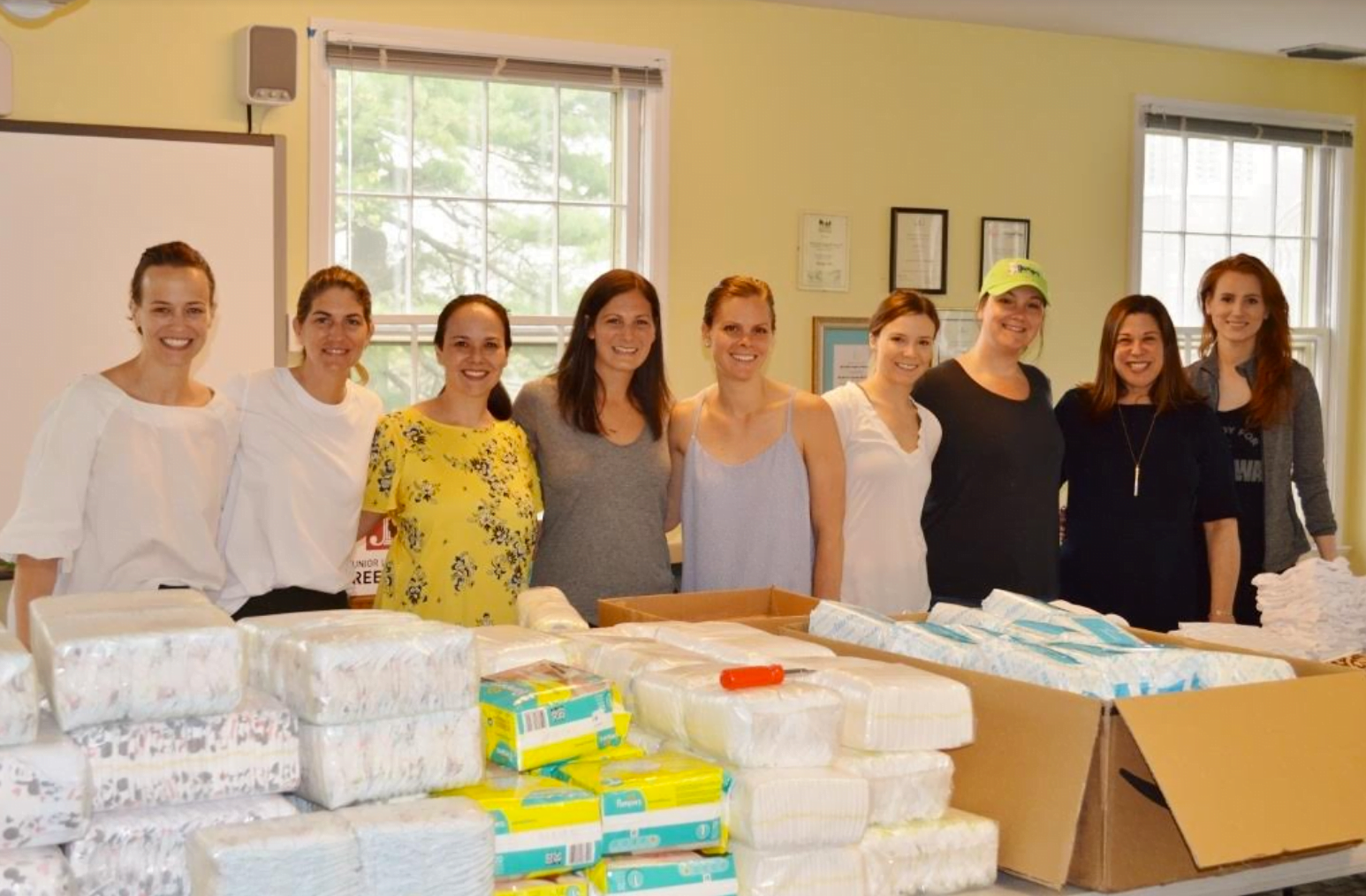 Throughout the month of March and April, the Junior League was able to collect many donations of unopened diaper packages, onesies, blankets, clothes, new pacifiers, new bottles, burp clothes, bouncers and other items to support these new mothers and babies. The Junior League also received generous donations from the following companies: The Steven & Alexandra Cohen Foundation, Zarbees, Fridababy, and Tiny Tots Kids Consignment.