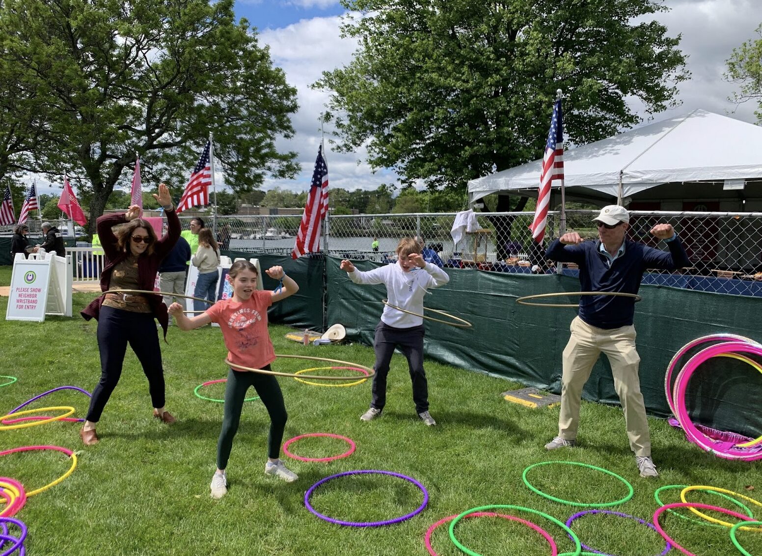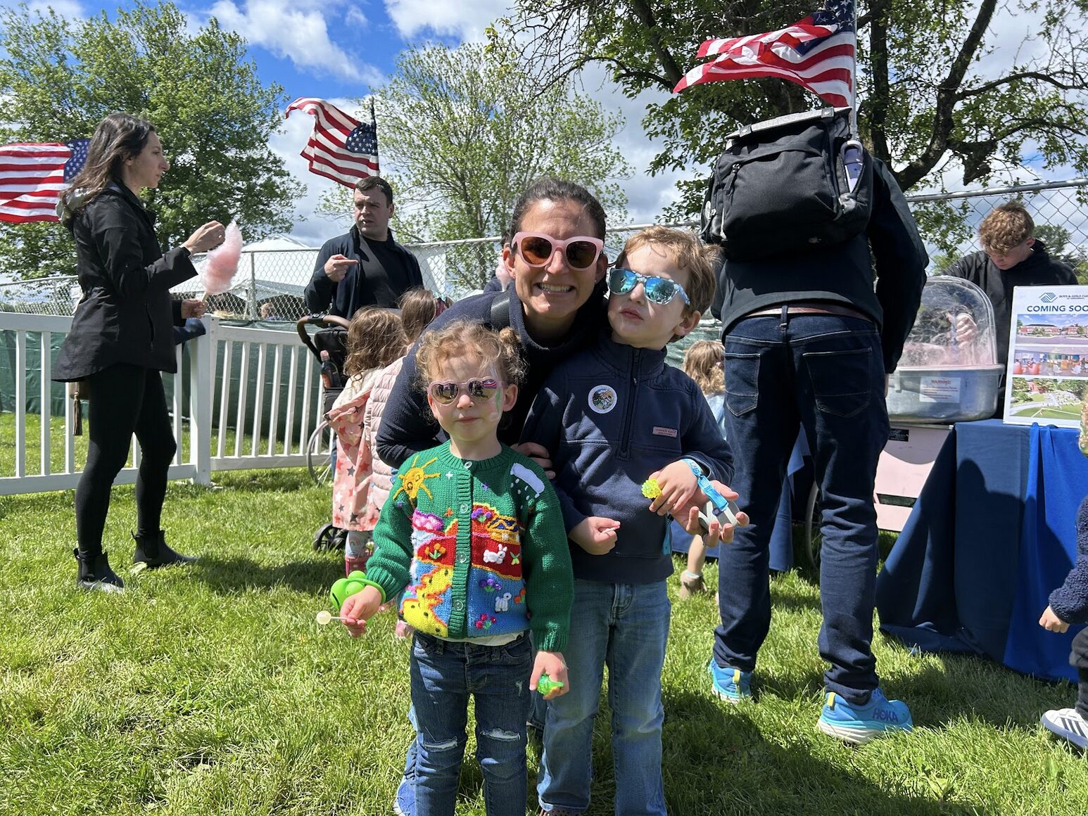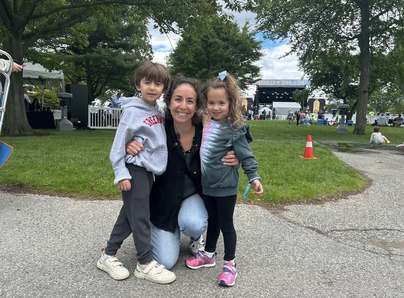 Sarah, Isabelle Richard and Hugh Boston participating in family fun activities at the Greenwich Town Party, May 24, 2025. Photo: Michael R. DeLuca