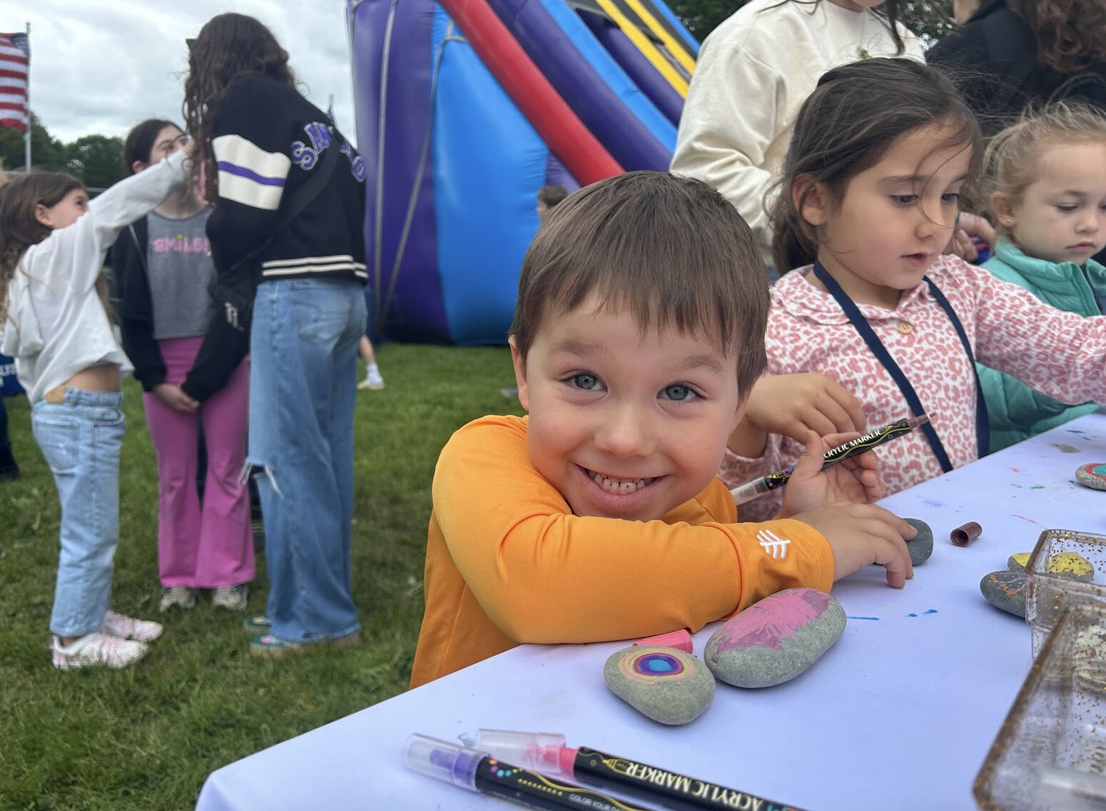 Jack and Georgina Round decorate rocks at the Greenwich Town Party, May 24, 2025. Photo: Sydney Floch