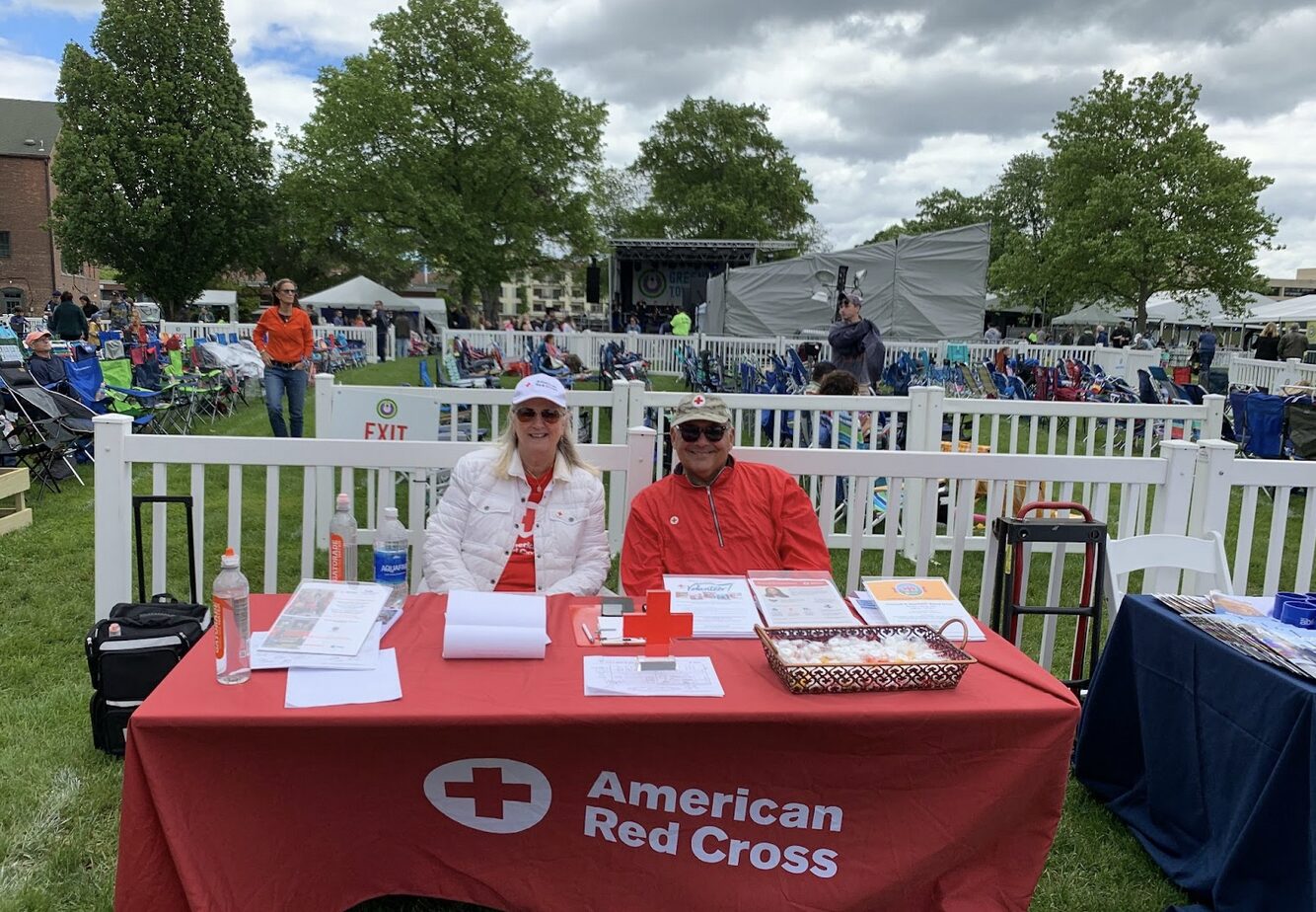 Jackie Hvolbeck and Ted Berenblum at the American Red Cross table at the Greenwich Town Party, May 24, 2025. Photo: Michael R. DeLuca