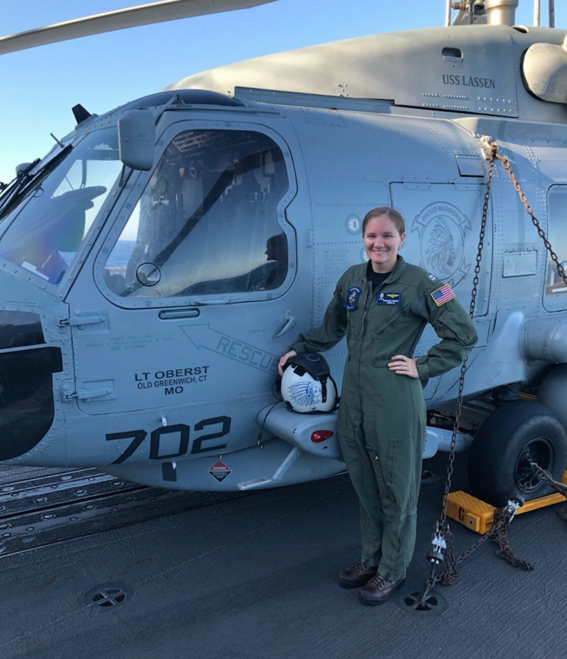 As a member of HSM-72 “Proud Warriors,” she deployed for four months on the cruiser USS Normandy (CG 60), four months on the aircraft carrier USS Harry S. Truman (CVN 75), and nine months on the destroyer USS Lassen (DDG 82). Those deployments took her to the 4th, 5th, and 6th Fleet areas of operation.