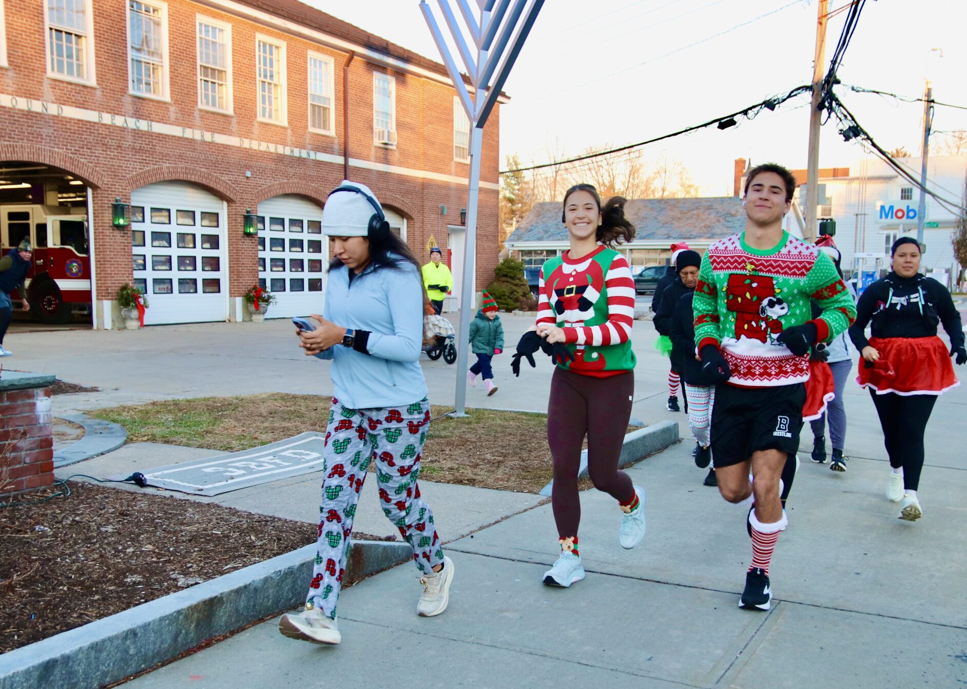 Bright and early Saturday morning the Greenwich Road Runners jingled all the way from the Sound Beach Fire house to Tod’s Point and back.