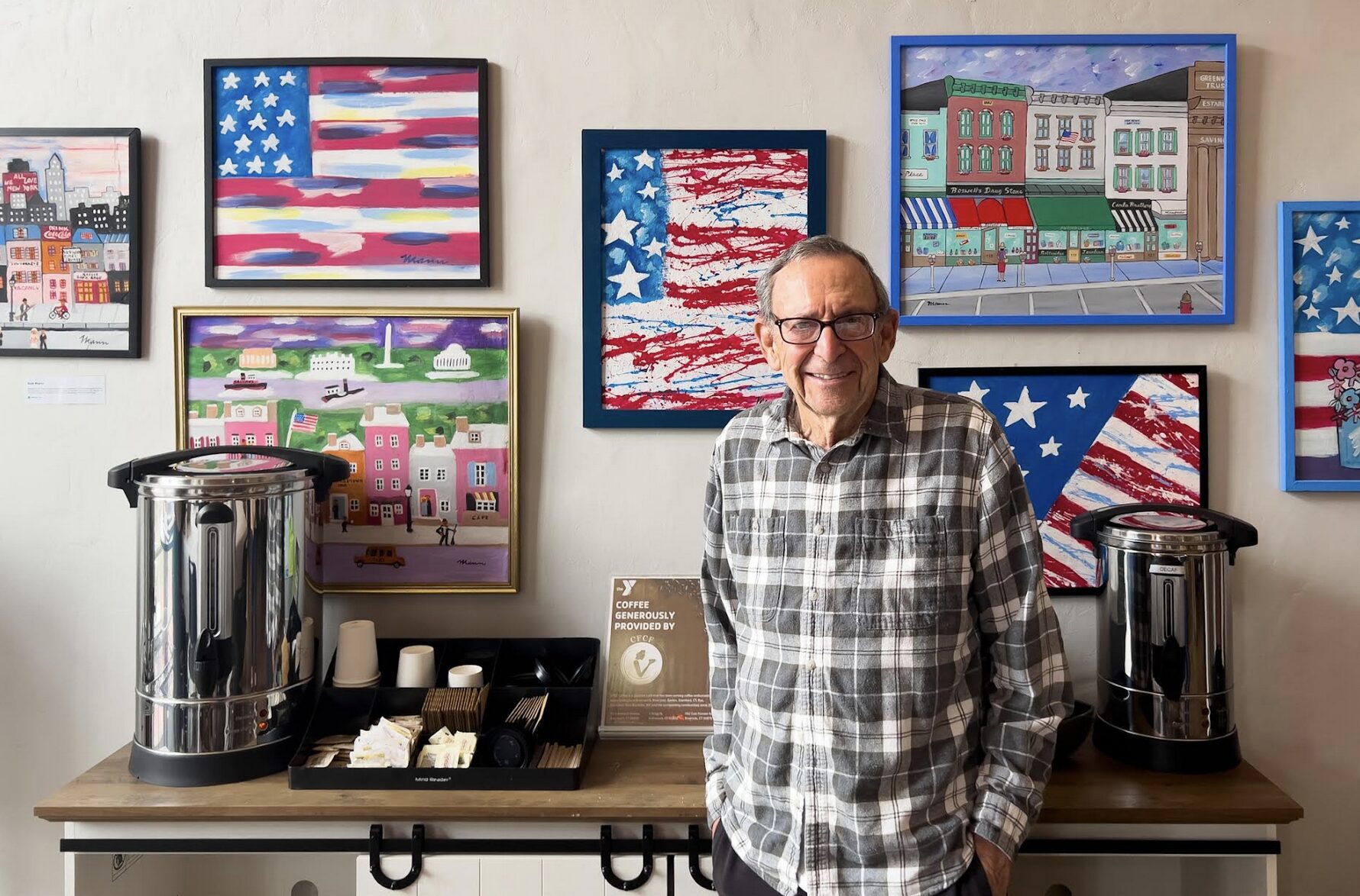 Stylized American flag artwork by Bob Mann on display at YMCA of Greenwich.