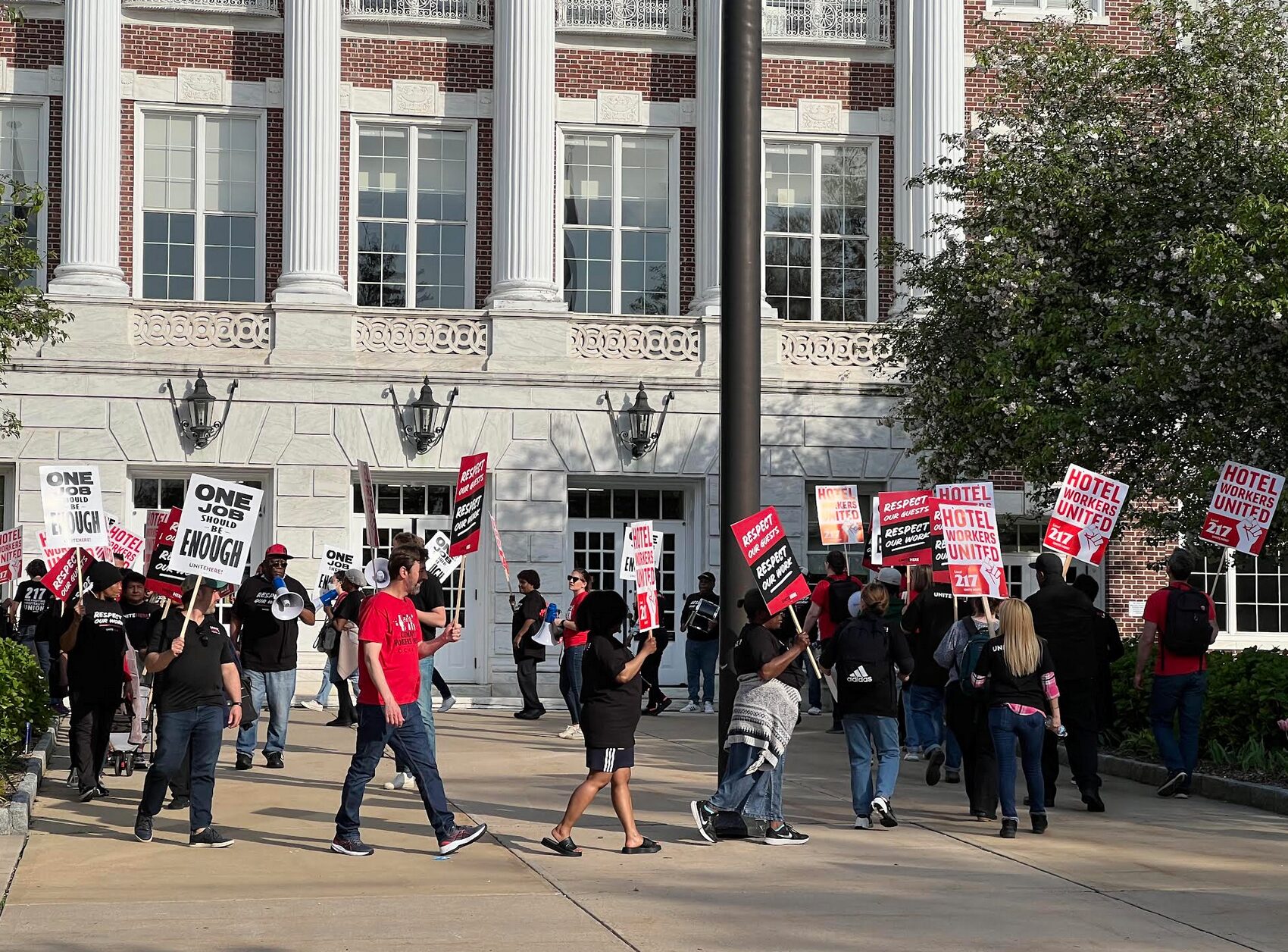 On their union Facebook page, Local 217 posted photos of picketers outside Omni New Haven Hotel from earlier in the day and commented: