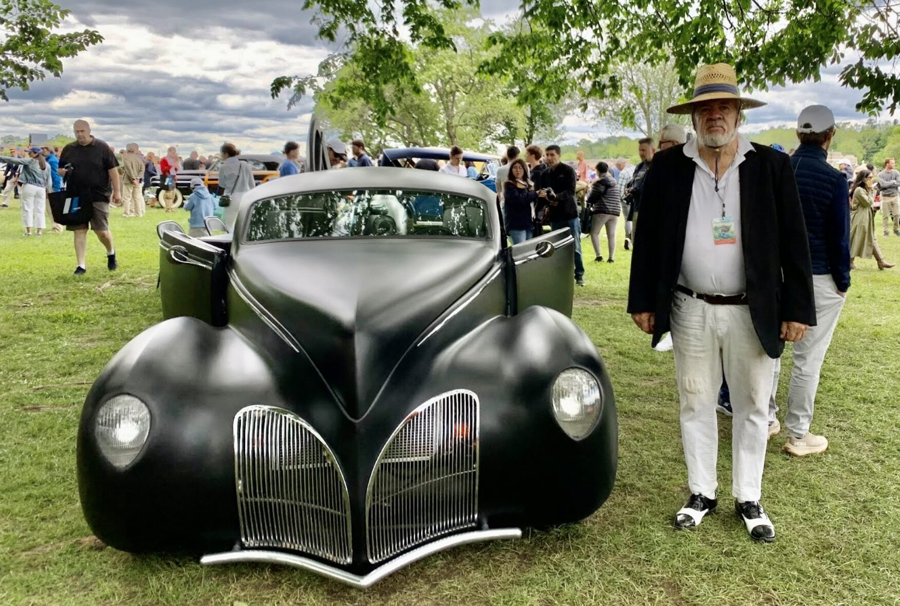 Former editor of Hot Rod Magazine, Terry Cook standing next to his 1939 Lincoln Zephyr Sedan at the Concours d’Elegance. June 1, 2025 Photo: Michael R. DeLuca