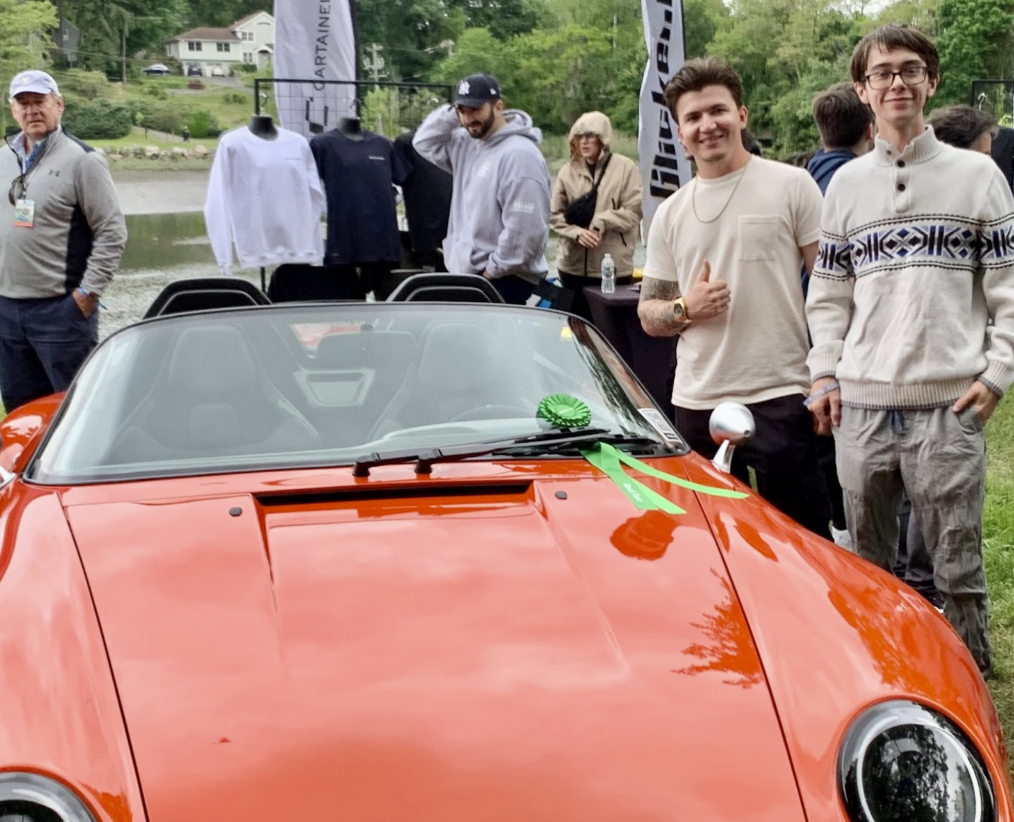 Bobby Gorman and Michael Beaver next to a stylish Porsche at the Concours D’Elegance. June 1, 2025 Photo: Michael R. DeLuca