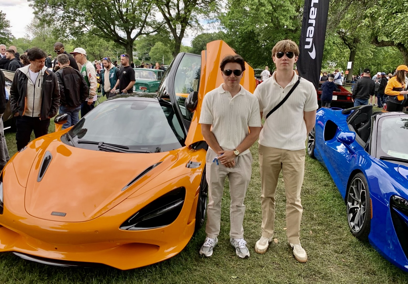 Kenny Lynch and Darion Camarillo next to a McLaren at the Concours D’Elegance. June 1, 2025 Photo: Michael R. DeLuca