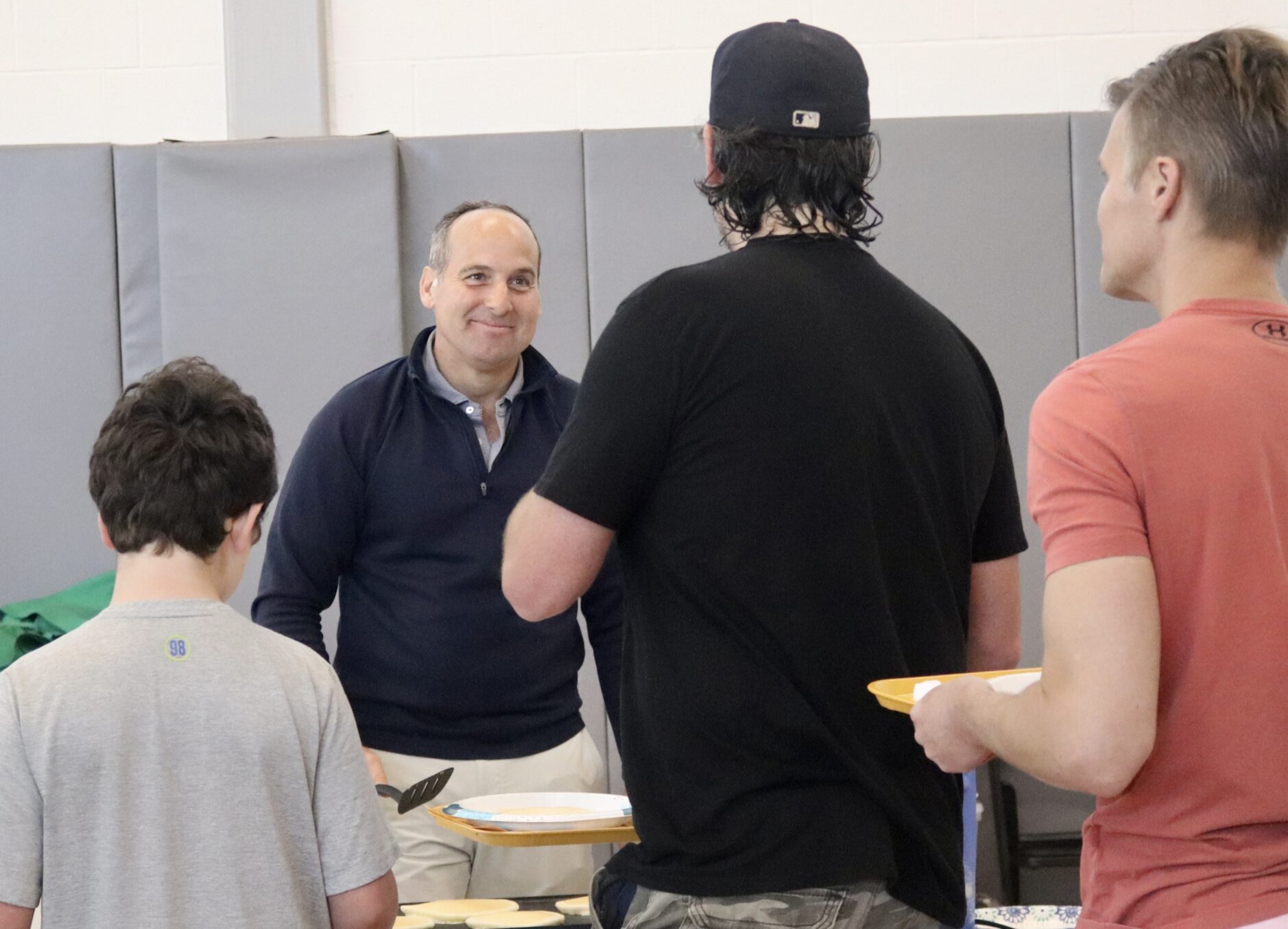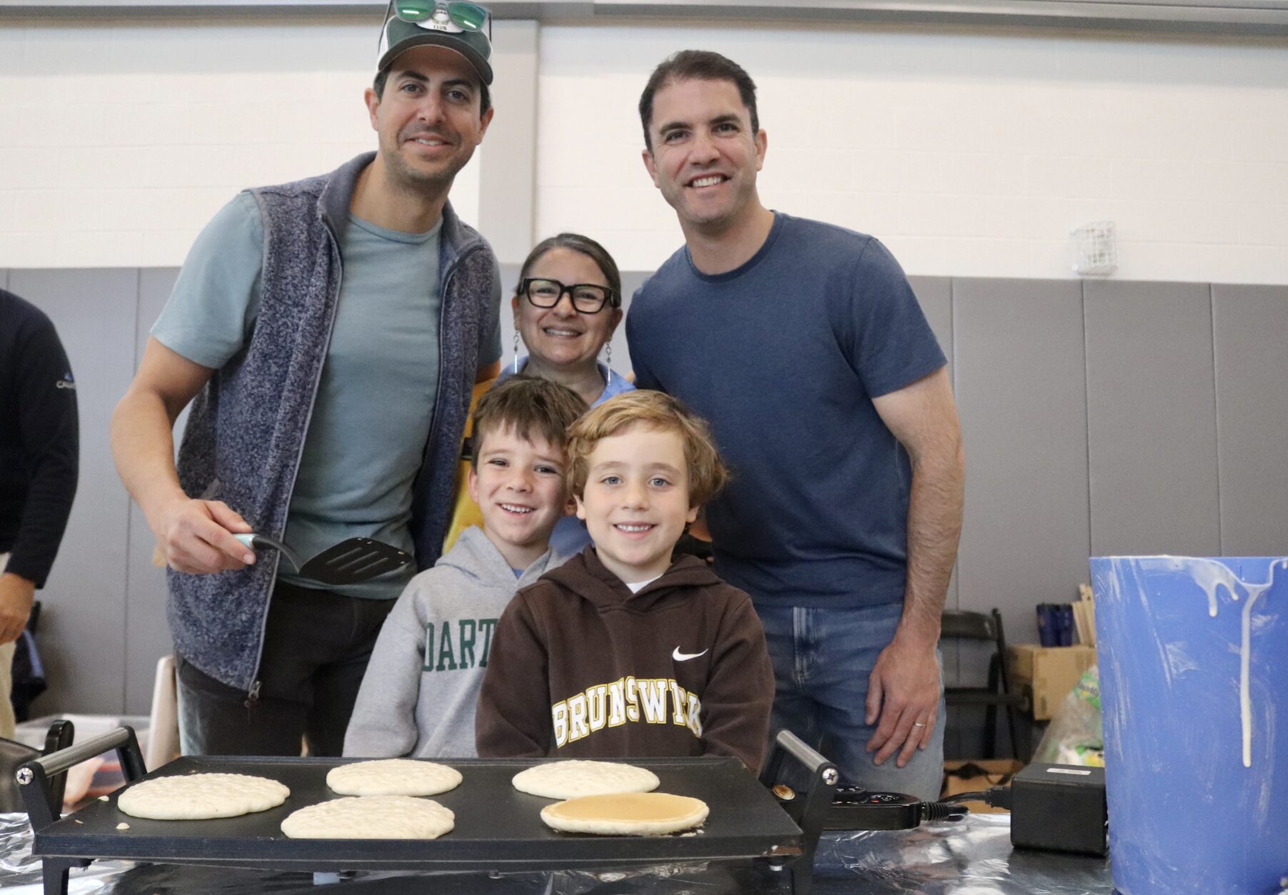 Greenwich Lions Club volunteer Nora Yanet Parry with Mark Fortunato and Garrett Overlock and their sons, both named James, volunteering at the Lions Club pancake breakfast at the Cohen Eastern Greenwich Civic Center. April 18, 2026