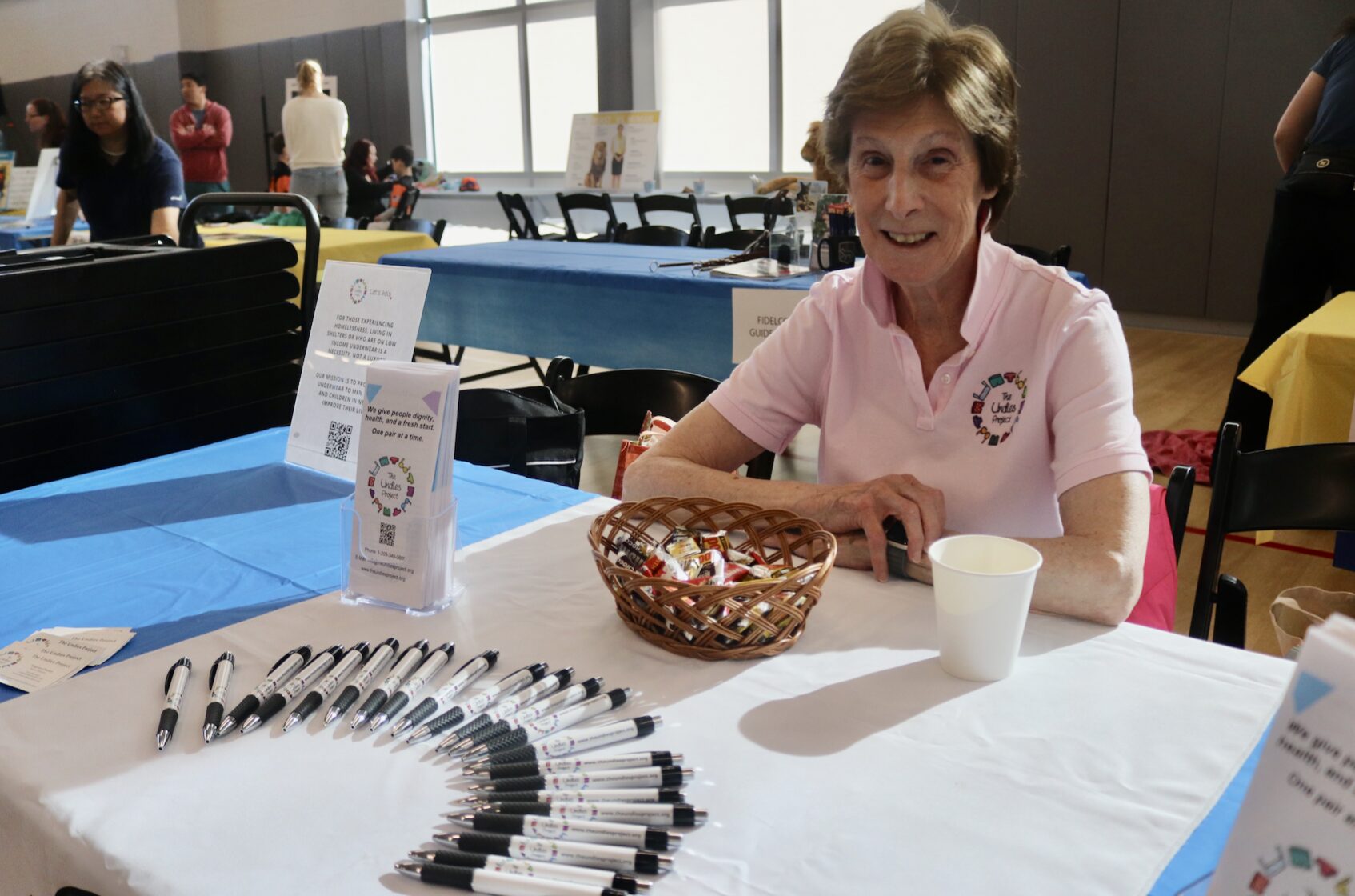 The Undies Project board member Virginia Chaney at the Greenwich Lions Club annual pancake breakfast at the Cohen Eastern Greenwich Civic Center. The Undies Project provides new underwear to men, women and children in need to improve their lives. April 18, 2026 Photo: Leslie Yager