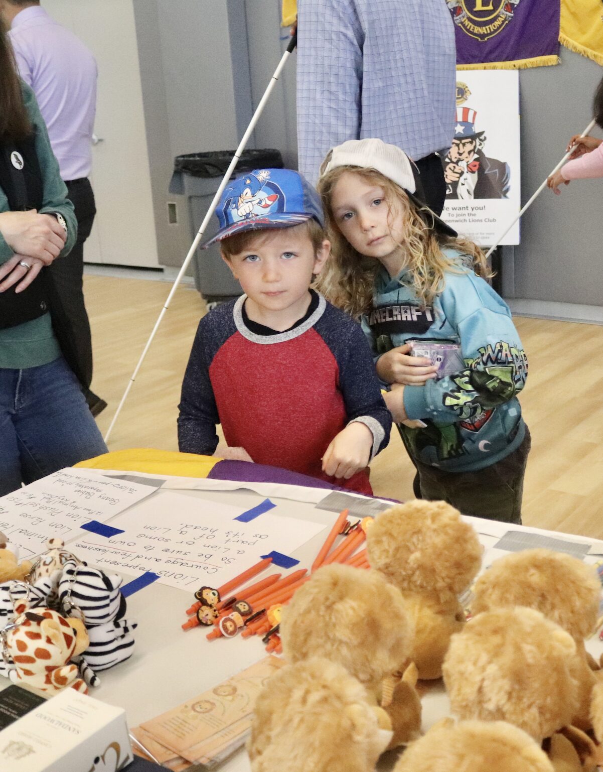 Checking out the lion-themed swag at the Greenwich Lions Club annual pancake breakfast at the Cohen Eastern Greenwich Civic Center. April 18, 2026 Photo: Leslie Yager
