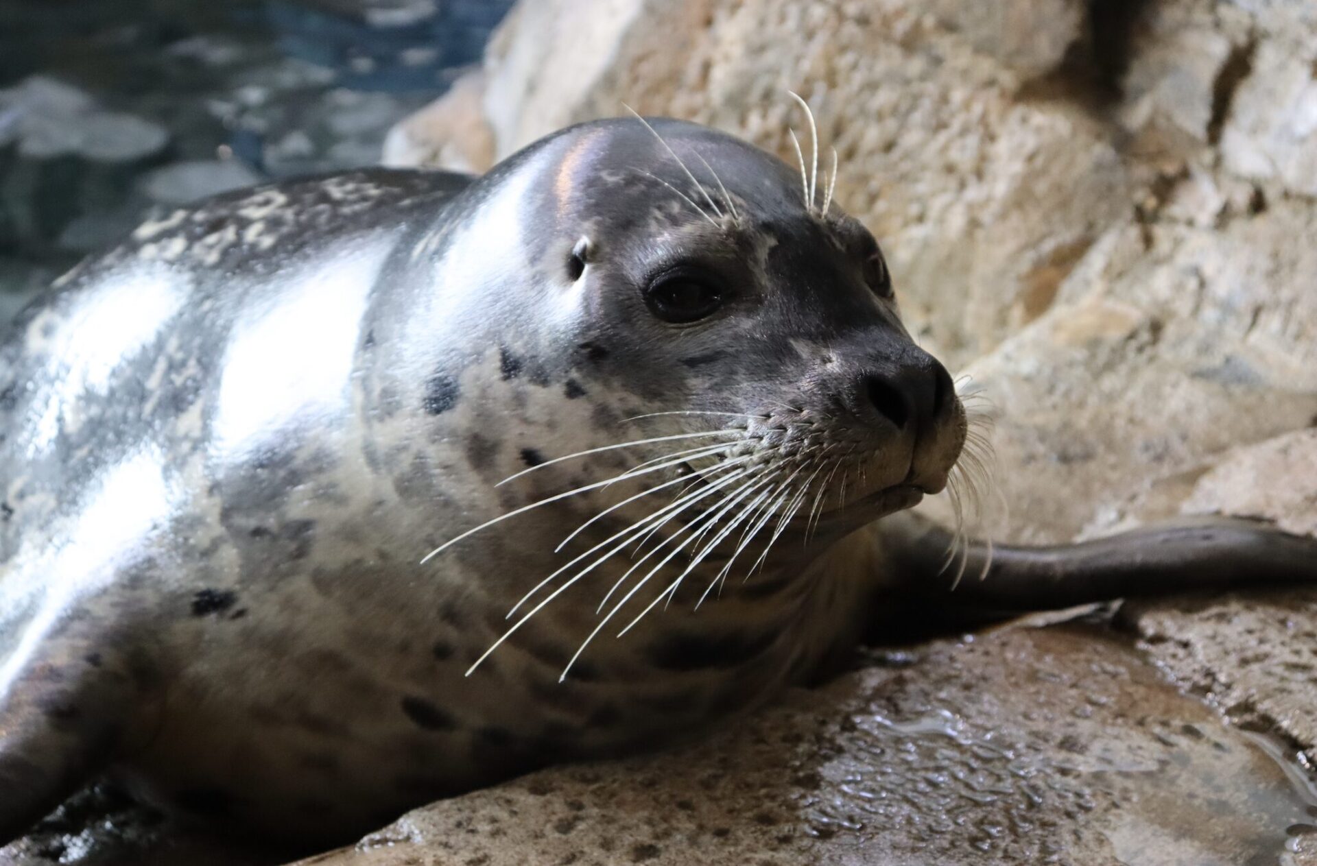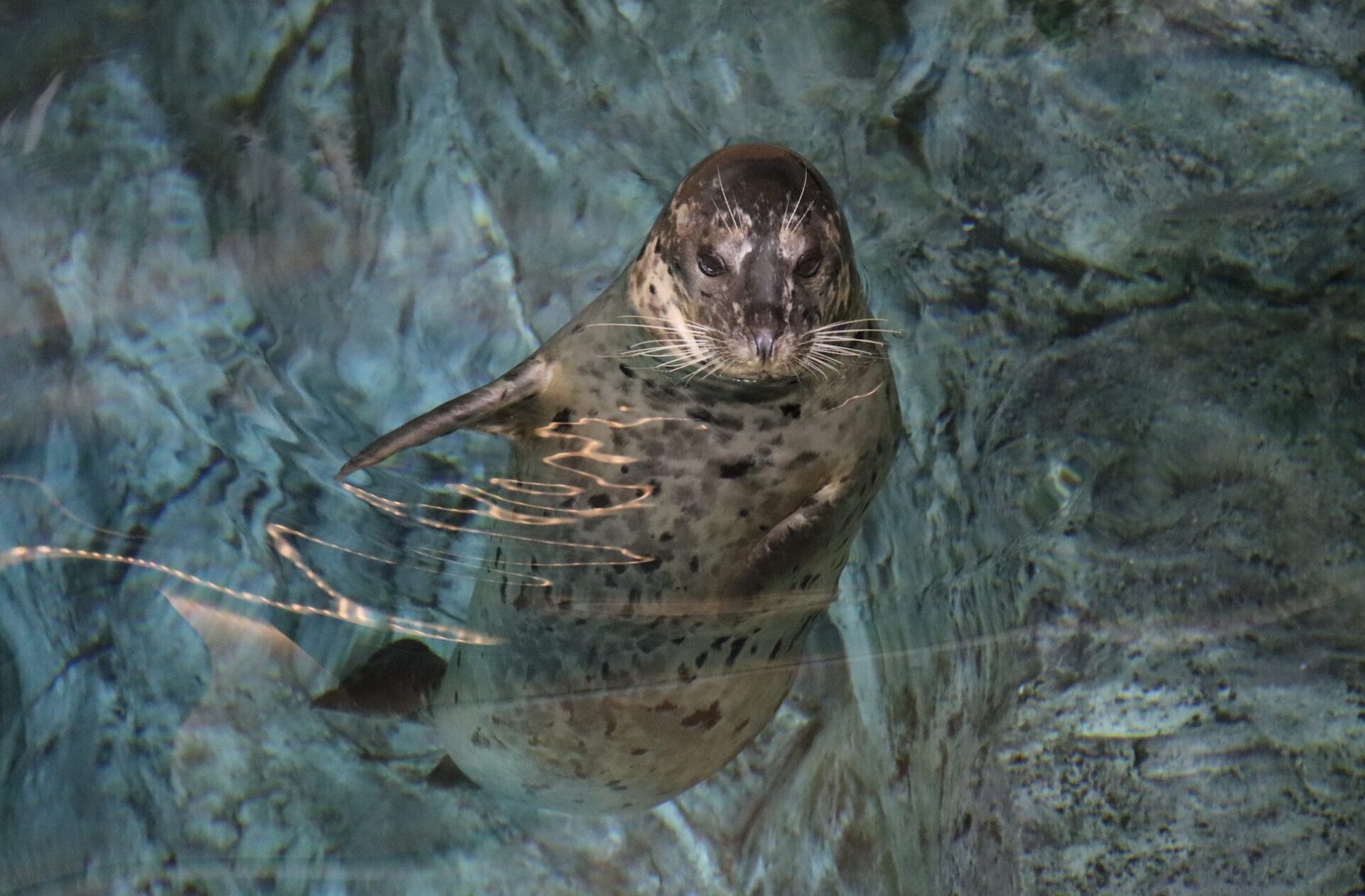 Visitors can easily spot Kaya among the Aquarium’s other seals — Gracie, Sono, and Mikey — thanks to her uniquely spotted fur pattern. She has quickly adapted to her new surroundings.