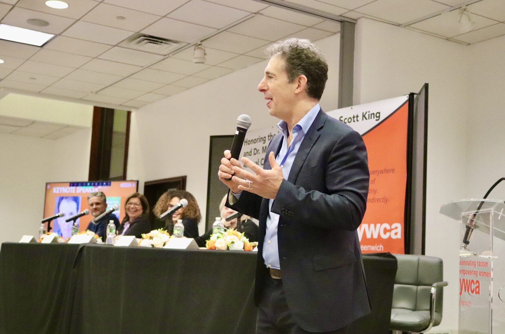 Keynote speaker Eric Klinenberg at the YWCA Greenwich’s Coretta Scott King and Dr. Martin Luther King Jr. Annual Conversation. Jan 22, 2026 Photo: Leslie Yager