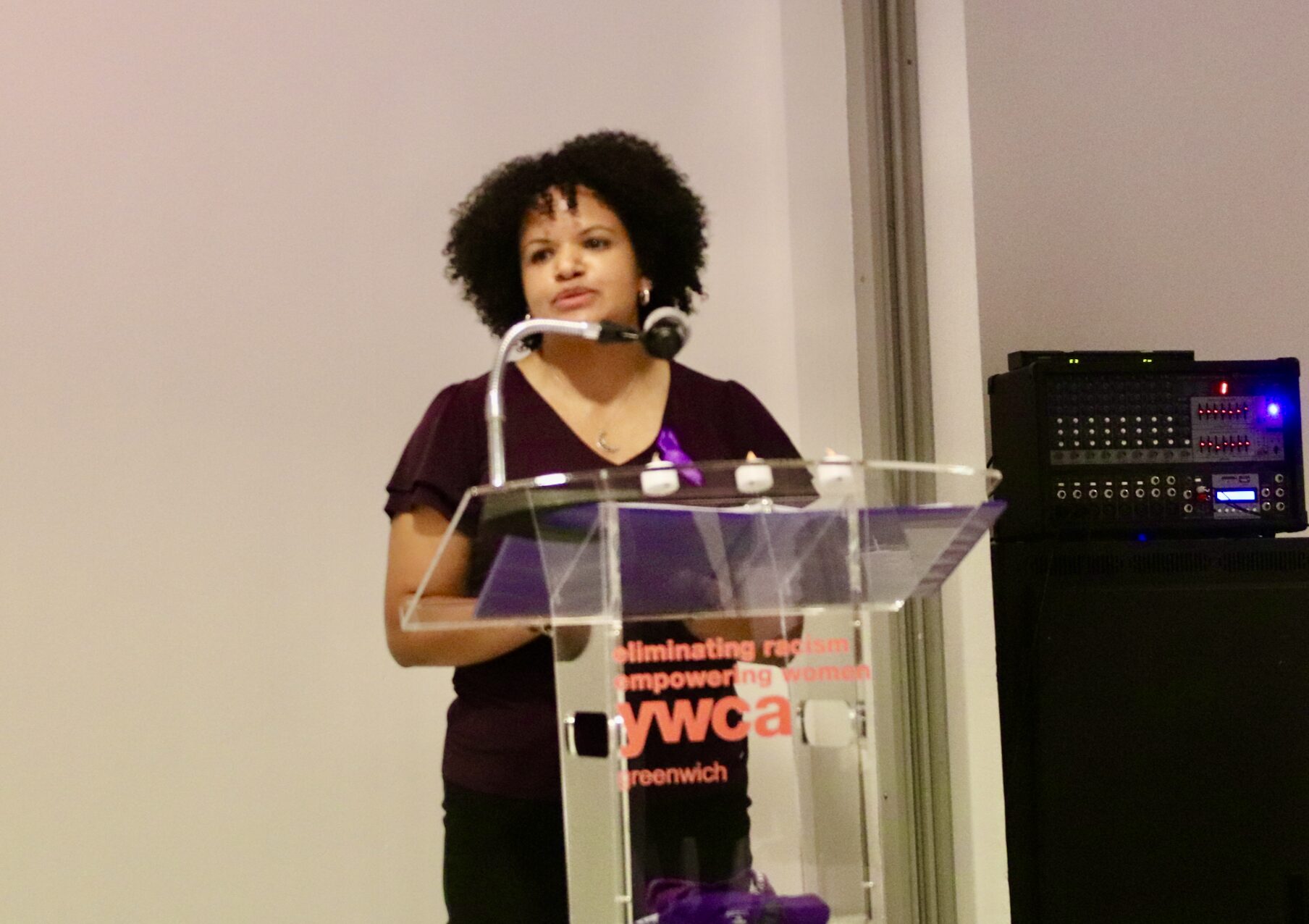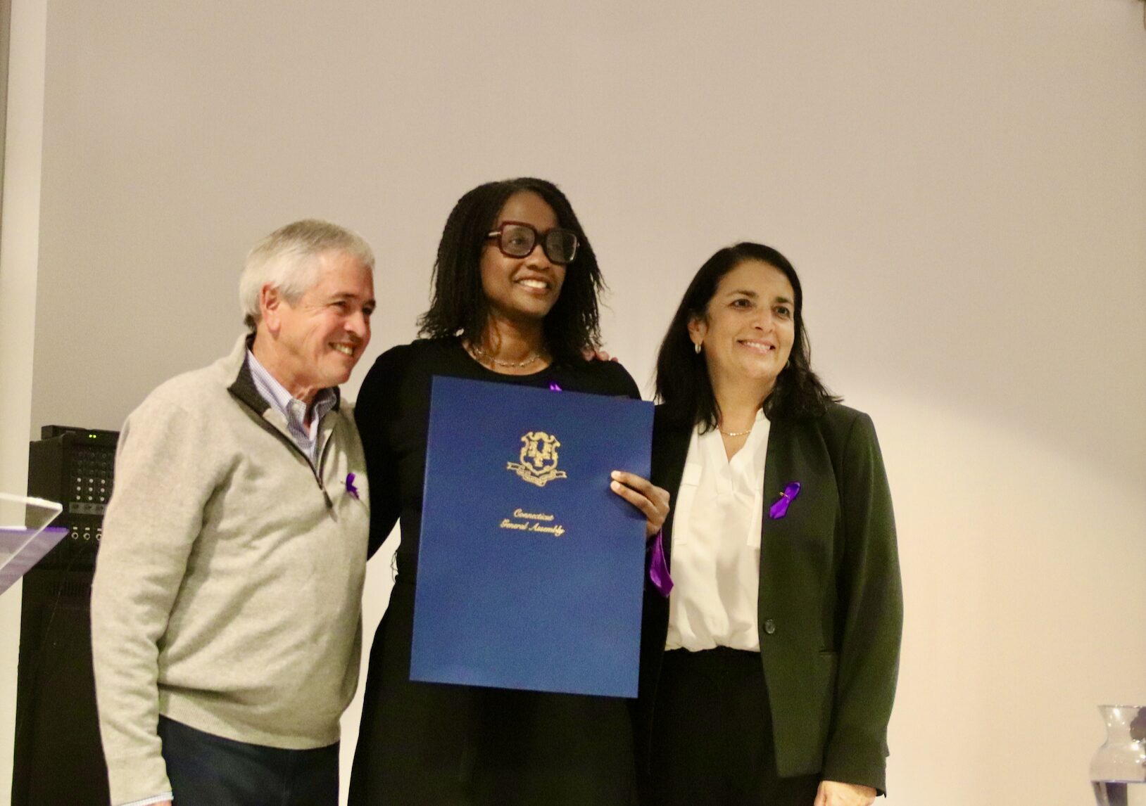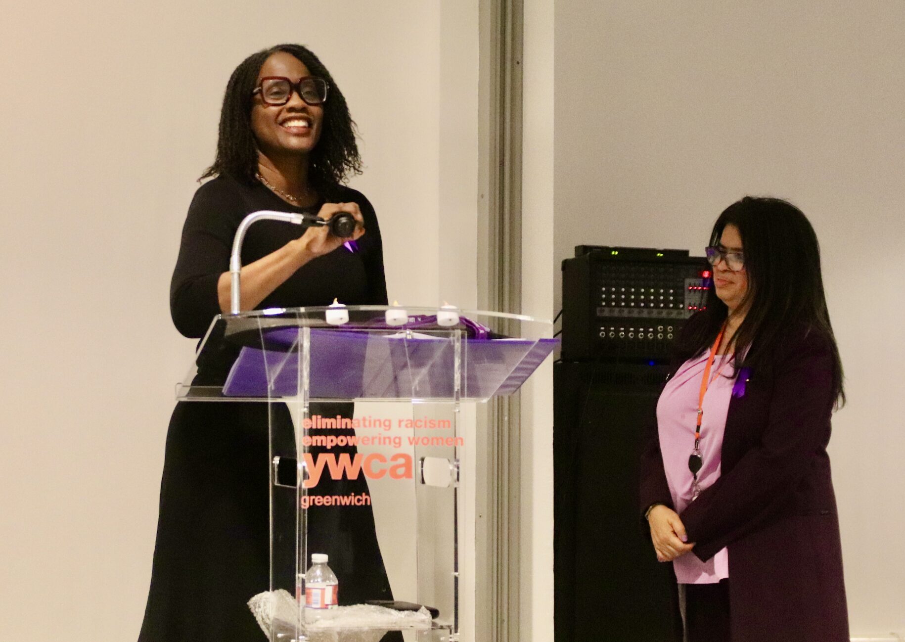 Demetria Nelson LCSW, Greenwich Commissioner of Human Services, was introduced as the Purple Ribbon Award honoree for her dedication, strength and commitment to the issue of domestic violence.