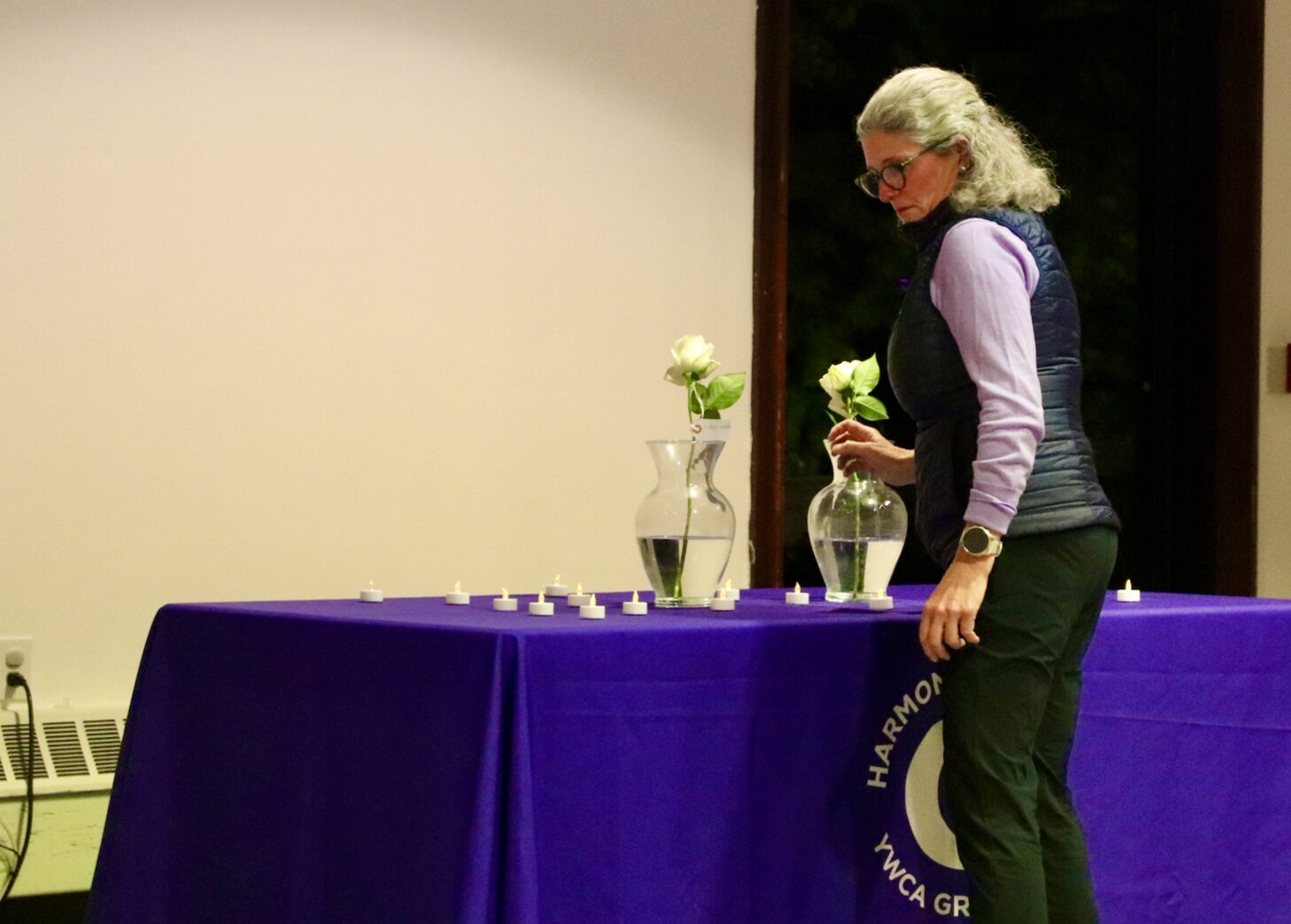 Jessie DiMuzio, Director of Programs, Harmony Project at the YWCA Greenwich’s community candlelight vigil for domestic violence on Oct 21, 2025. Photo: Leslie Yager