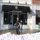 On Sunday morning, the day after the Blizzard of 2016, aka “Jonas,” on Greenwich Avenue, Town workers were putting the finishing touches on their all-nighter (thank you!) clearing streets and sidewalks of 16″ of snow. These photos were taken Sunday, Jan. 24 between 8:30am and 10:00am.