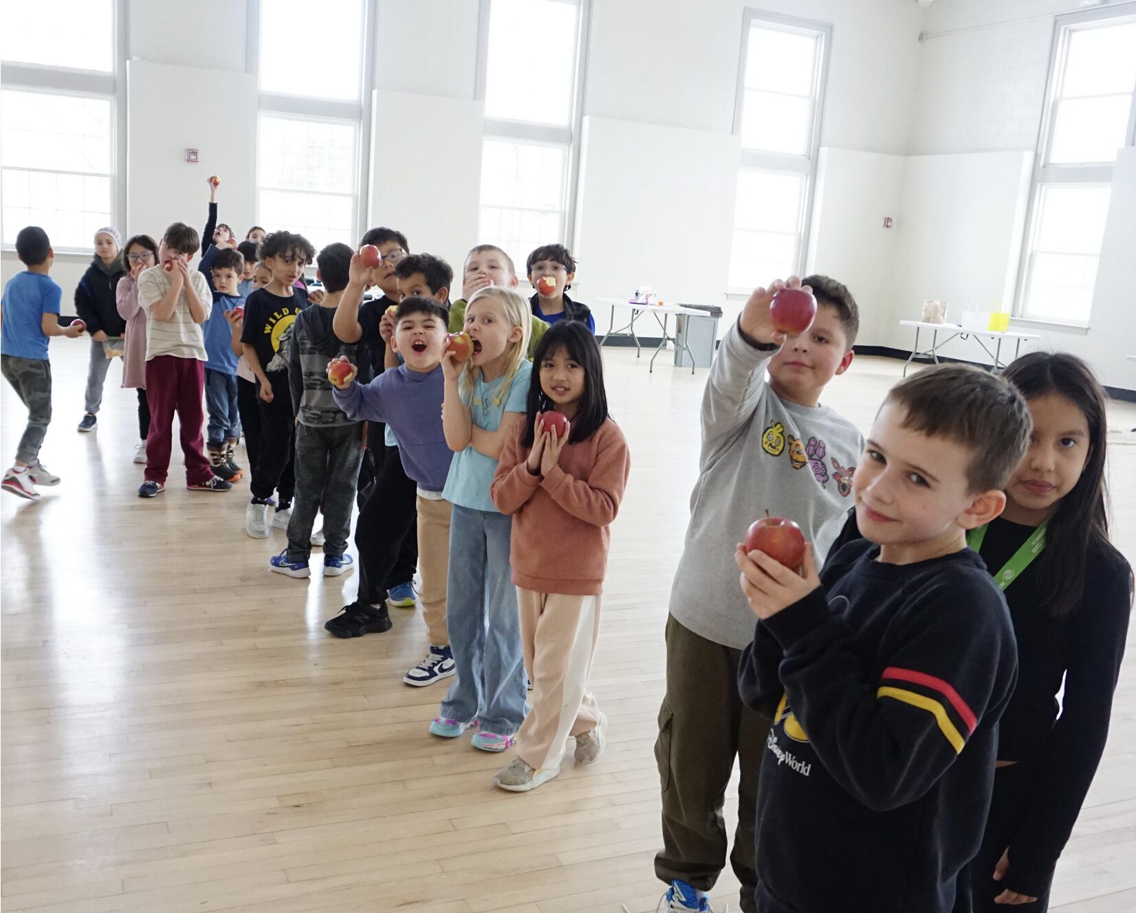 Public Health Dental Hygienists Amanda Feminelli and Mary Ellen Munro led interactive activities to teach children about proper brushing, healthy snack choices, and the importance of routine dental visits. Each child also received a healthy snack as part of the celebration, apples donated by Stop & Shop of Greenwich.