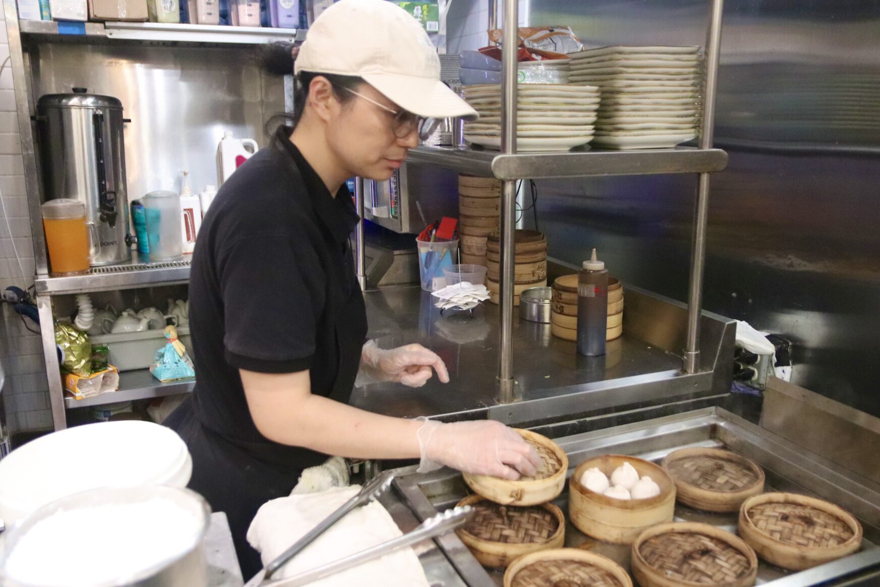 Dim Sum is popular at STEAM, making up about 25% of sales. The dumplings are home made. Pictured: Ling Li makes dumplings by hand.May 9, 2025 Photo: Leslie Yager