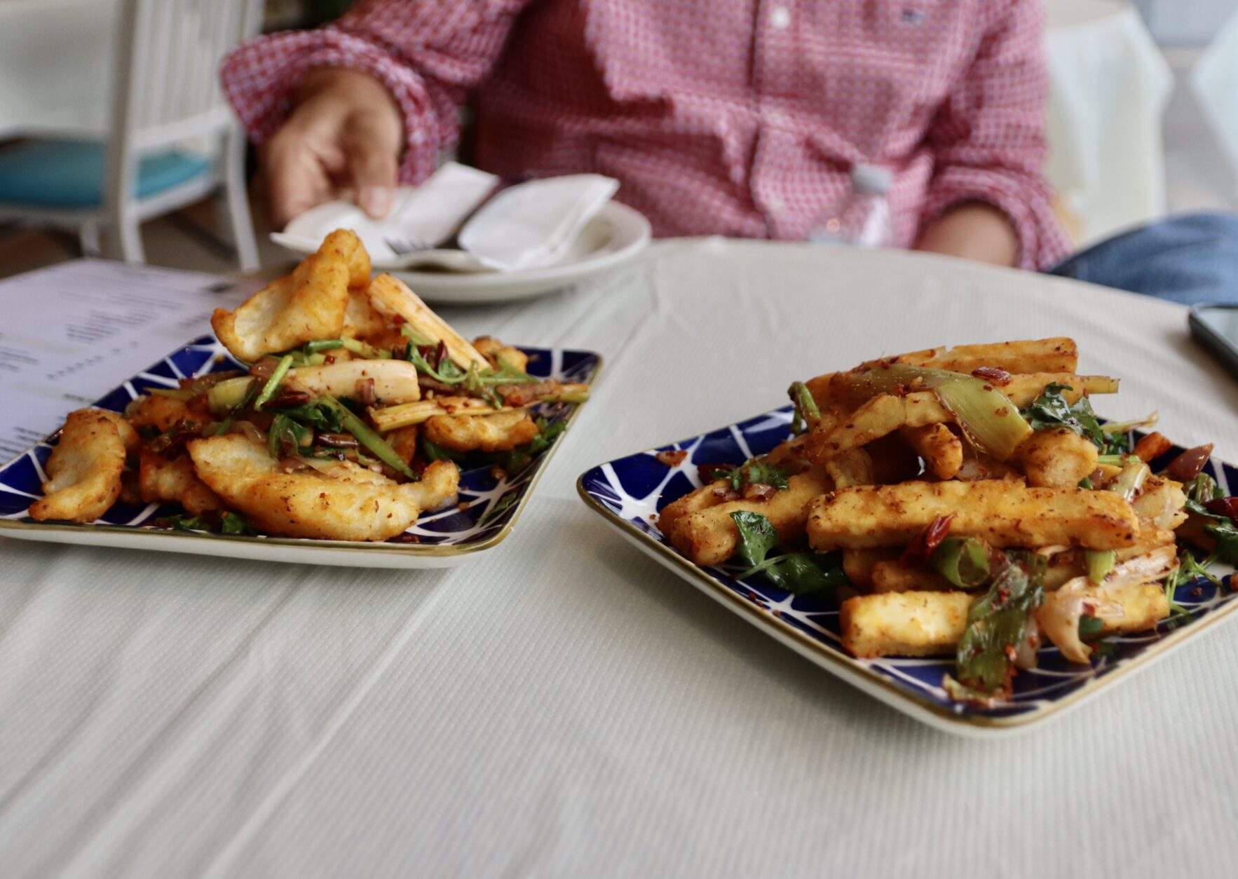 From the “Small Dishes” section of the menu, left: Bamboo Fish with Cumin and Sichuan Spices and (right) Dry Friend Eggplant. May 9, 2025 Photo: Leslie Yager