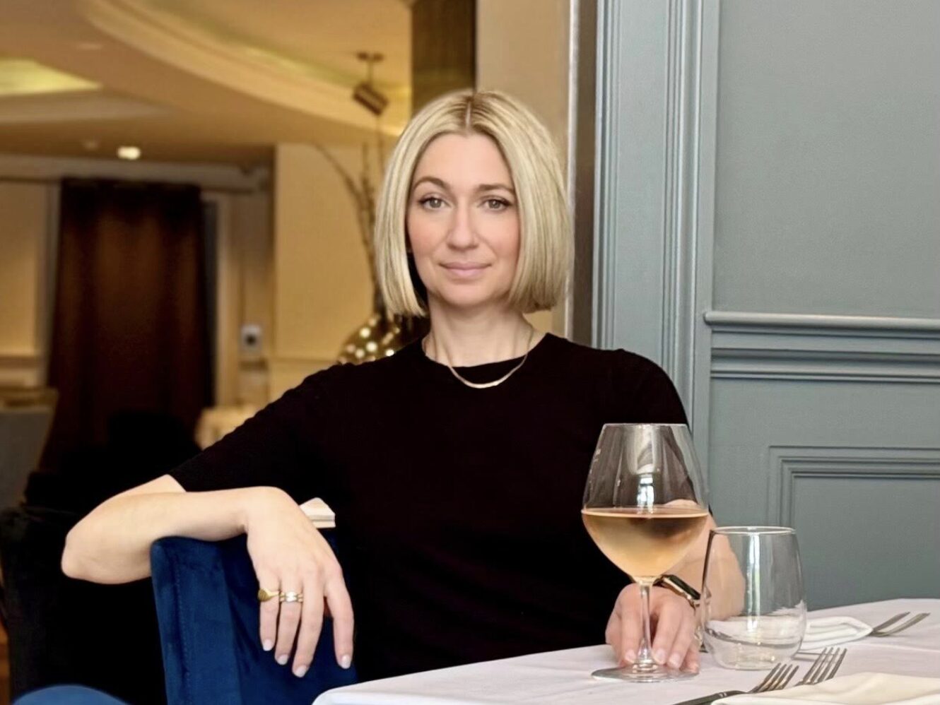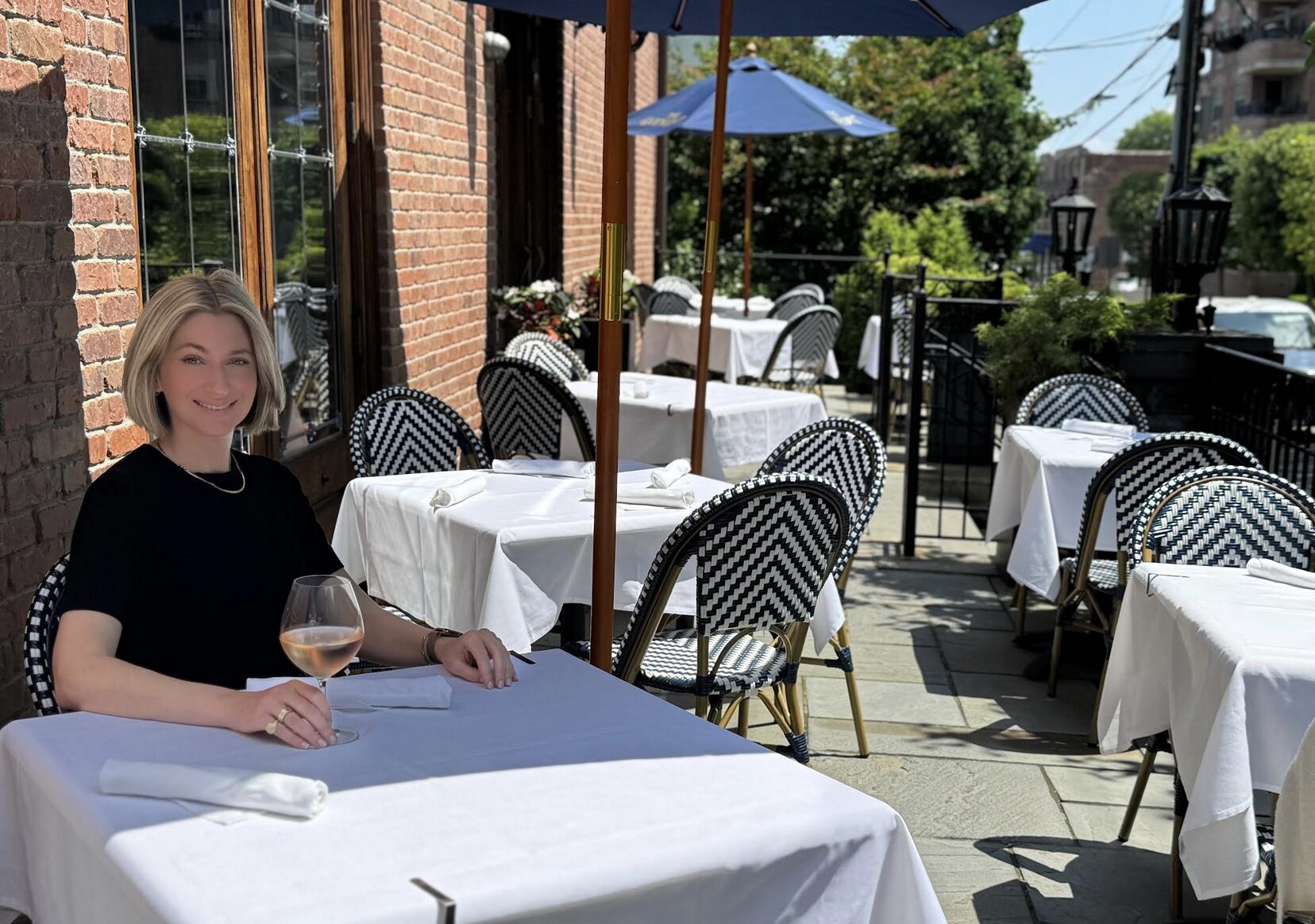 Townhouse Operations Manager Dana Cifone enjoying a glass of wine on the restaurant’s outdoor patio. Photo: Olivia Damavandi