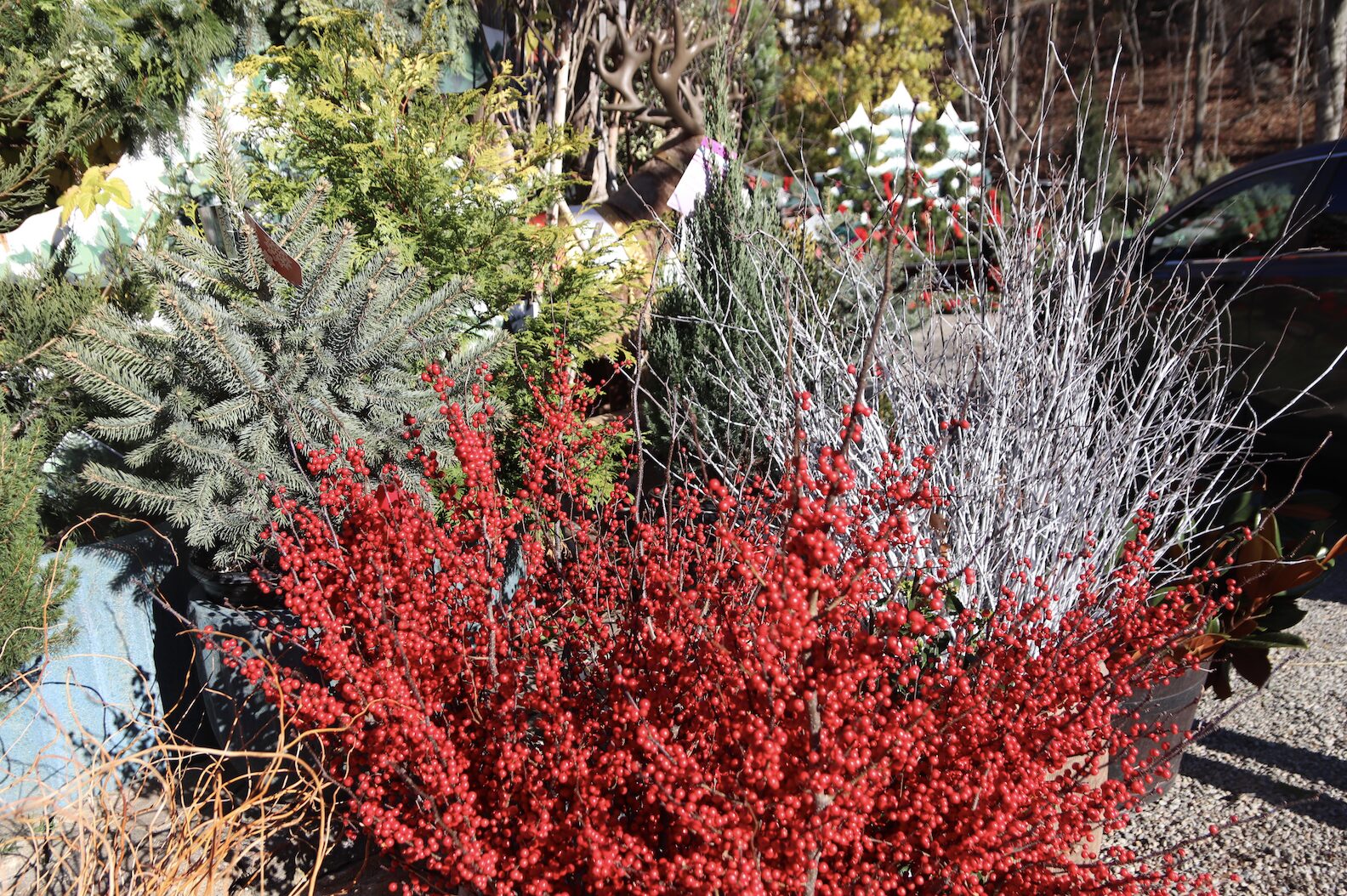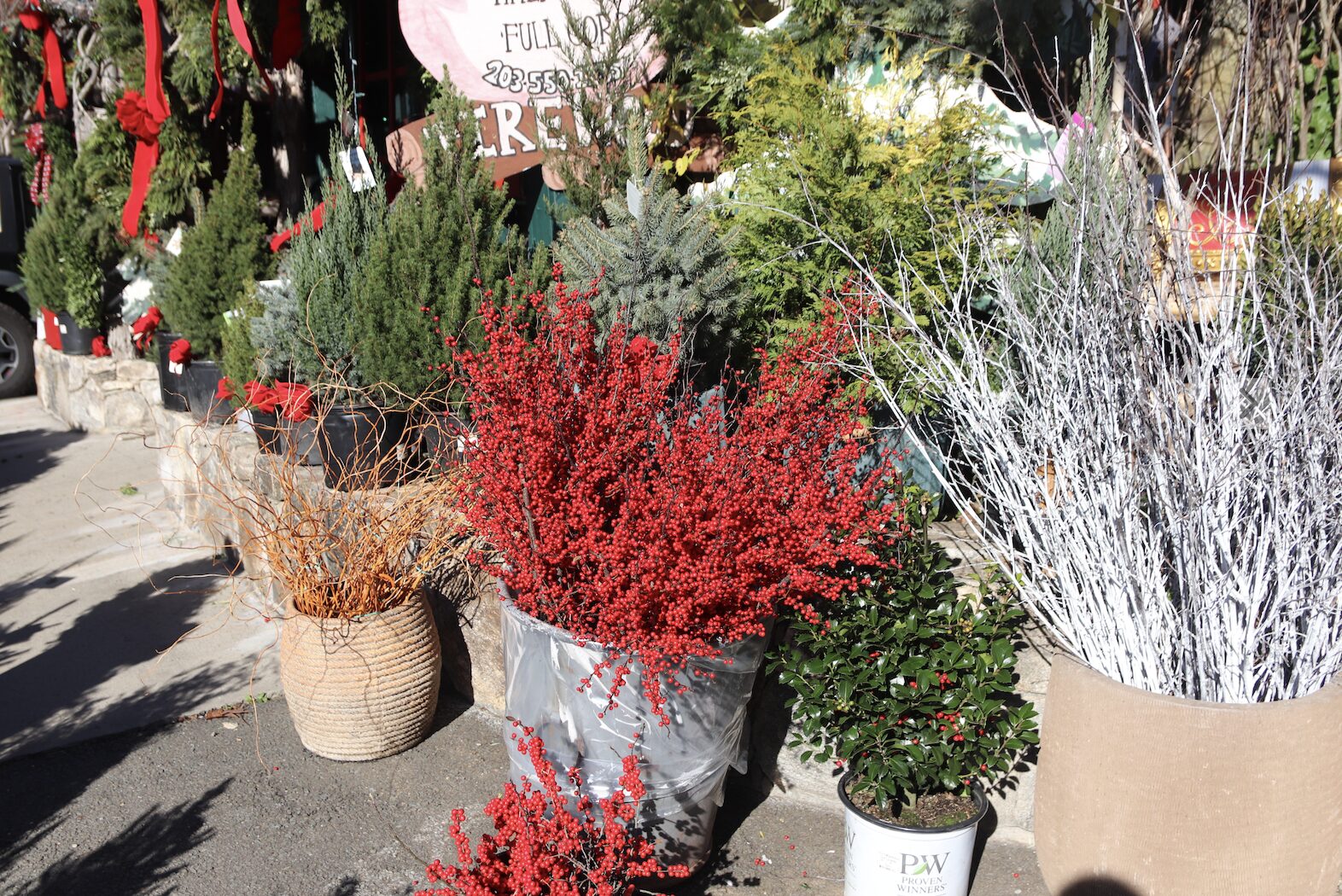 Bundles of fresh cut Winterberry among the displays of Christmas trees, wreathes and garlands at Arch in Bloom at 201 Pemberwick Road. Nov 24, 2025 Photo: Leslie Yager