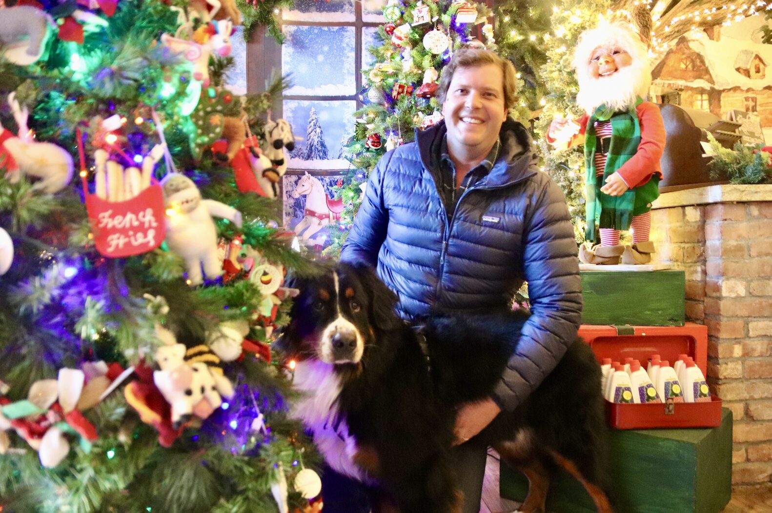 Derek D’Andrea with his dog Rowan in the Arch in Bloom retail shop at 201 Pemberwick Road. Nov 24, 2025 Photo: Leslie Yager