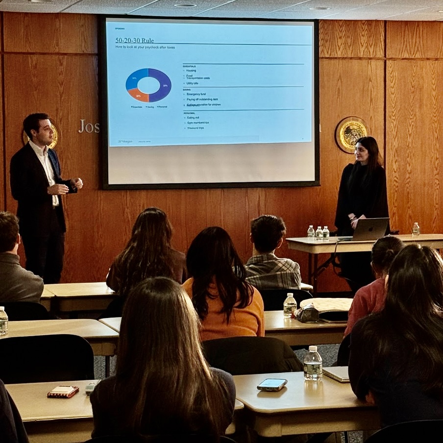 Speakers included Jon Wendell, founder of Nassau Point Investors, a small-cap private equity firm and a graduate of Harvard Business School; Mack Portnoy, a Vice President at J.P. Morgan Private Bank; and Saphora Afkhami, an analyst at J.P. Morgan Private Bank.