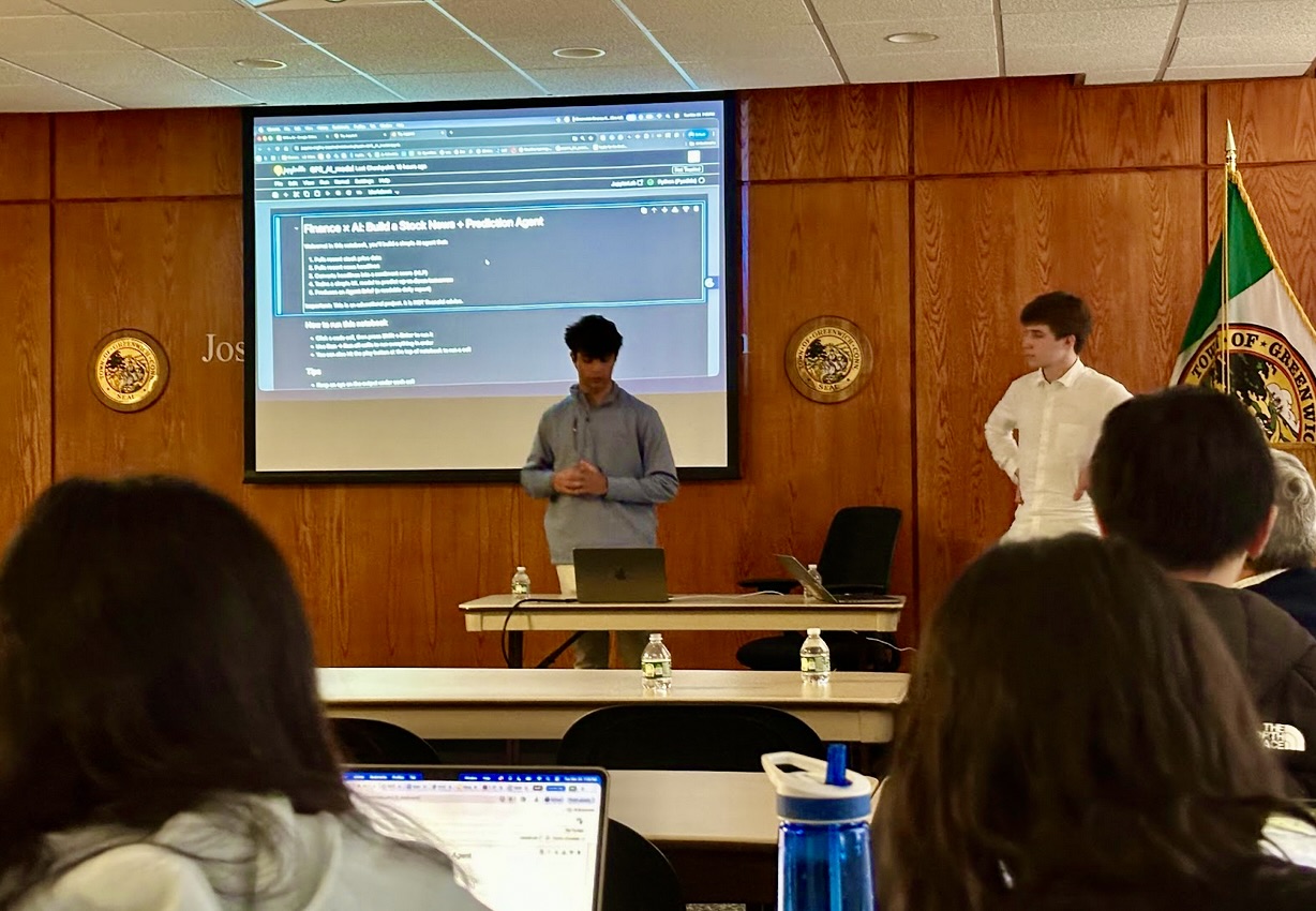 Last Tuesday 40+ Greenwich area high school students from public and private schools gathered at Greenwich Town Hall for a finance and AI workshop.