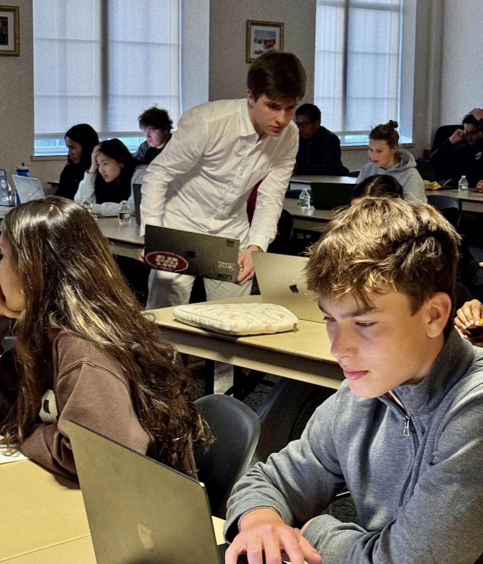 Lieberman, a junior at GCDS, led a discussion about what agents are and how they are being used in financial markets today. Students were then led through a hands-on exercise: building their own stock-prediction agent and walking through the code used to make it. As Lieberman walked through the code and natural language processing, Wendell worked one-on-one with students, helping work through any issues in building the model.