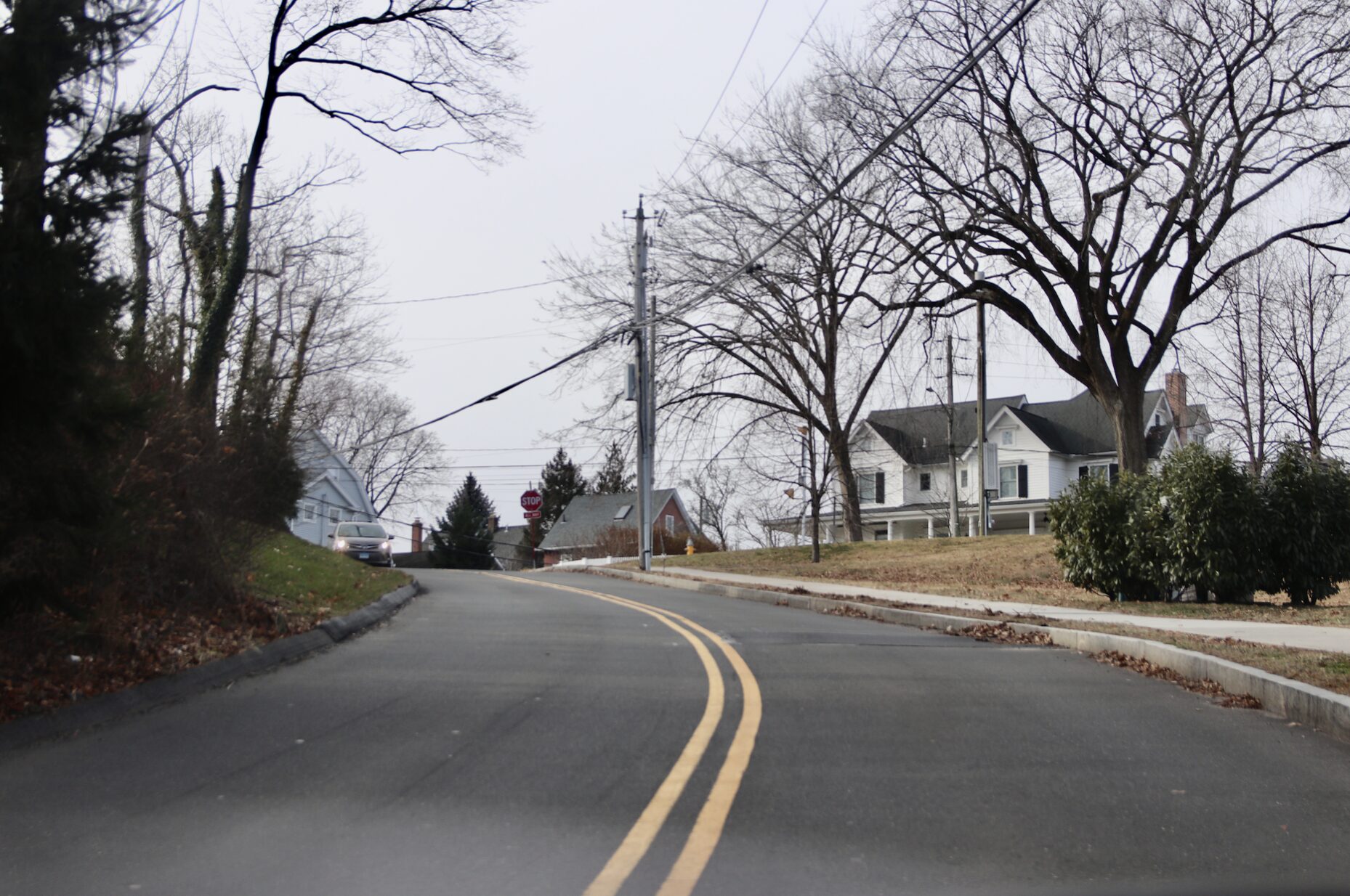 View from Anderson Road up the hill to the four way stop at East Elm and Lincoln.