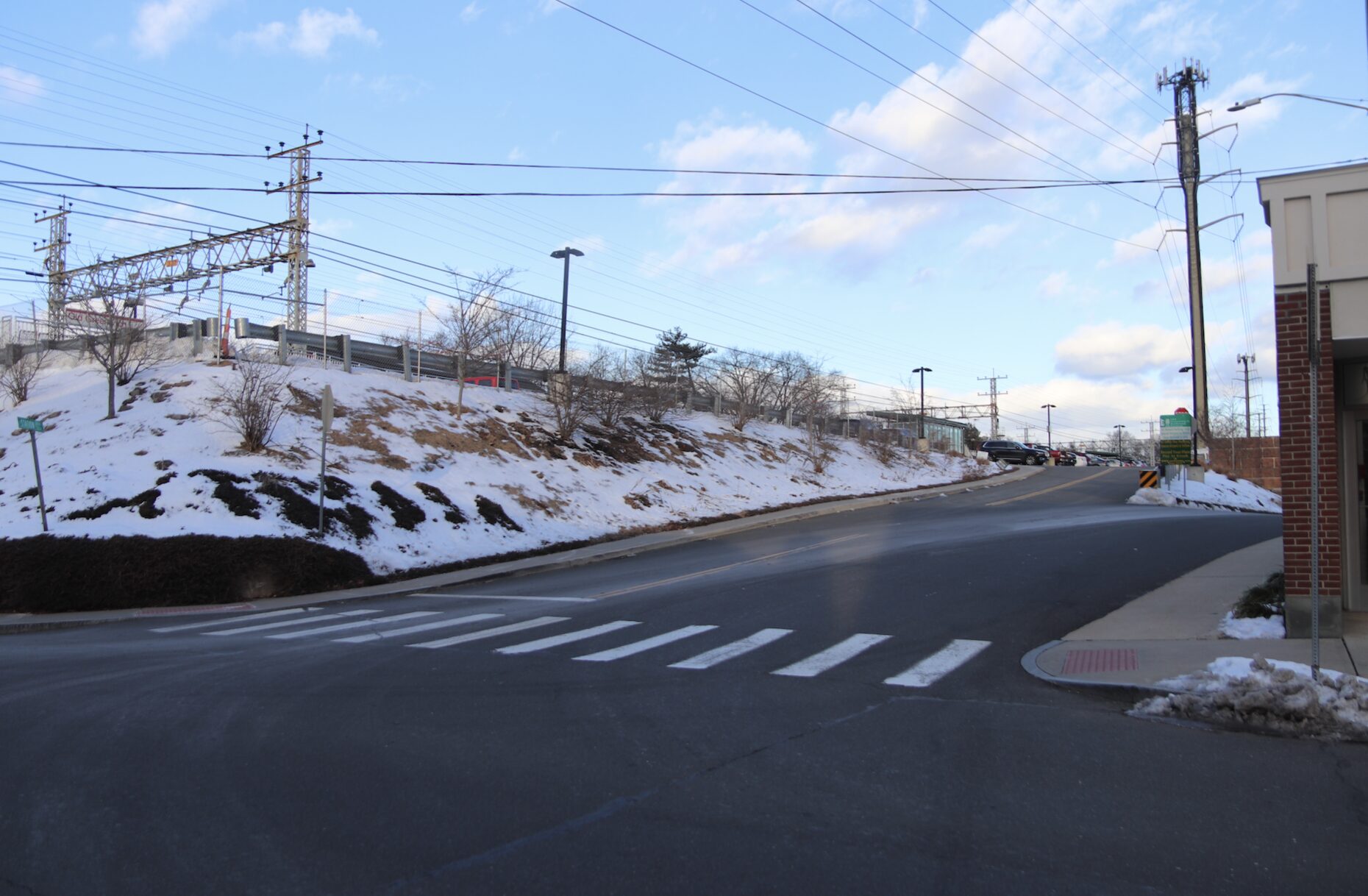 Crosswalk across to Station Drive South along Sound Beach Drive. Dec 30, 2025. Dec 30, 2025