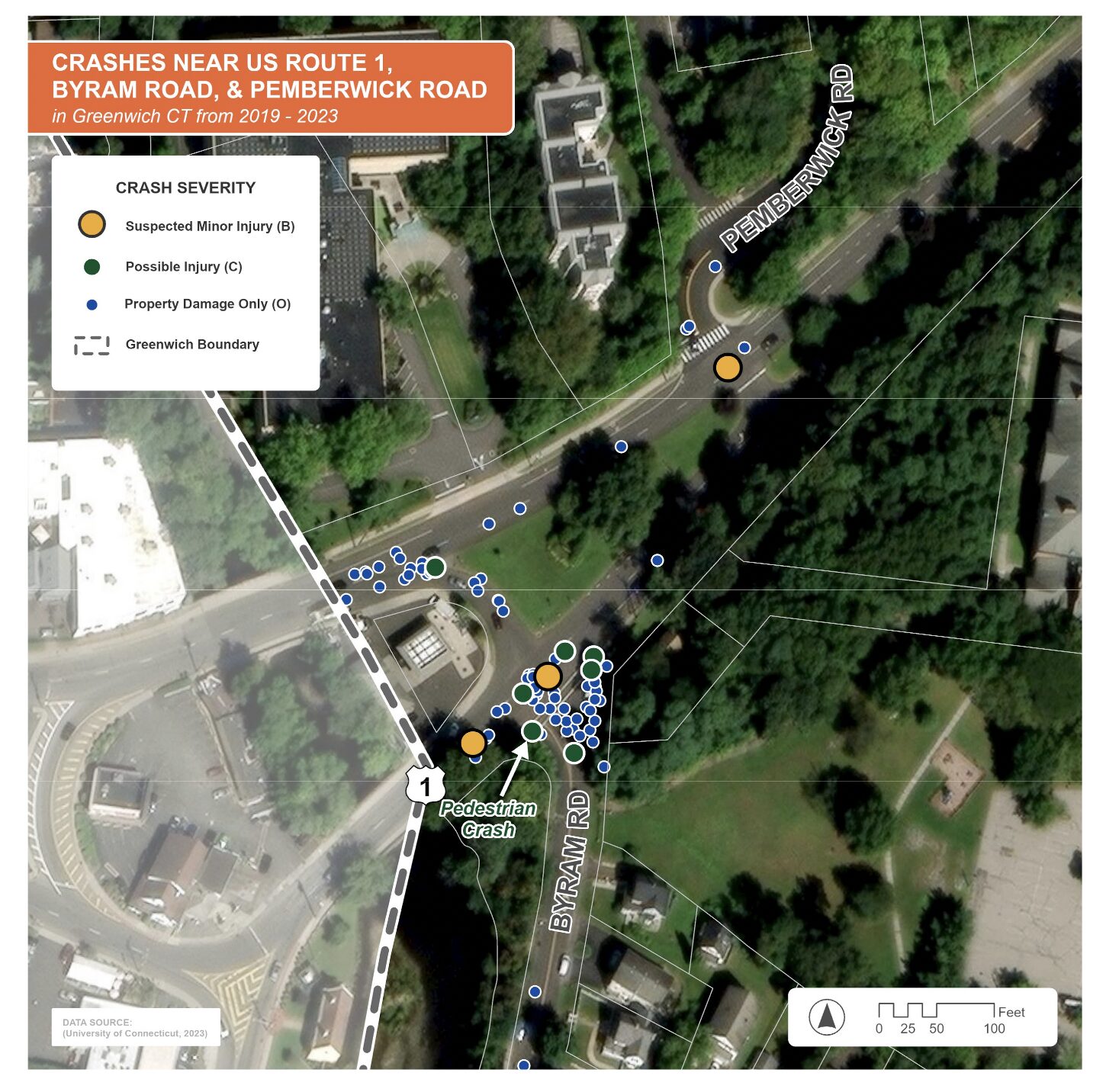 A memo to the Selectmen from Michael Kiselak of DPW said the area is in need of pedestrian safety improvements based feedback from Greenwich residents and crash safety analysis prepared for the Safe Streets Action Plan.