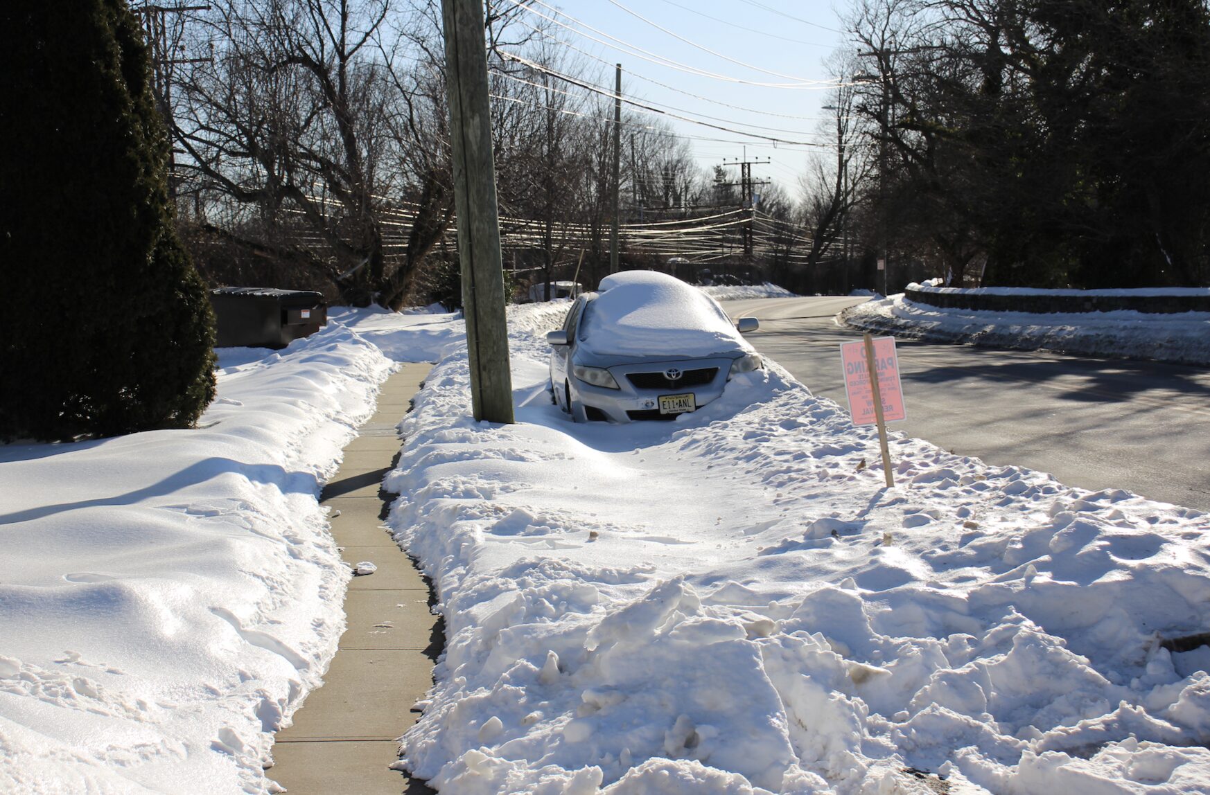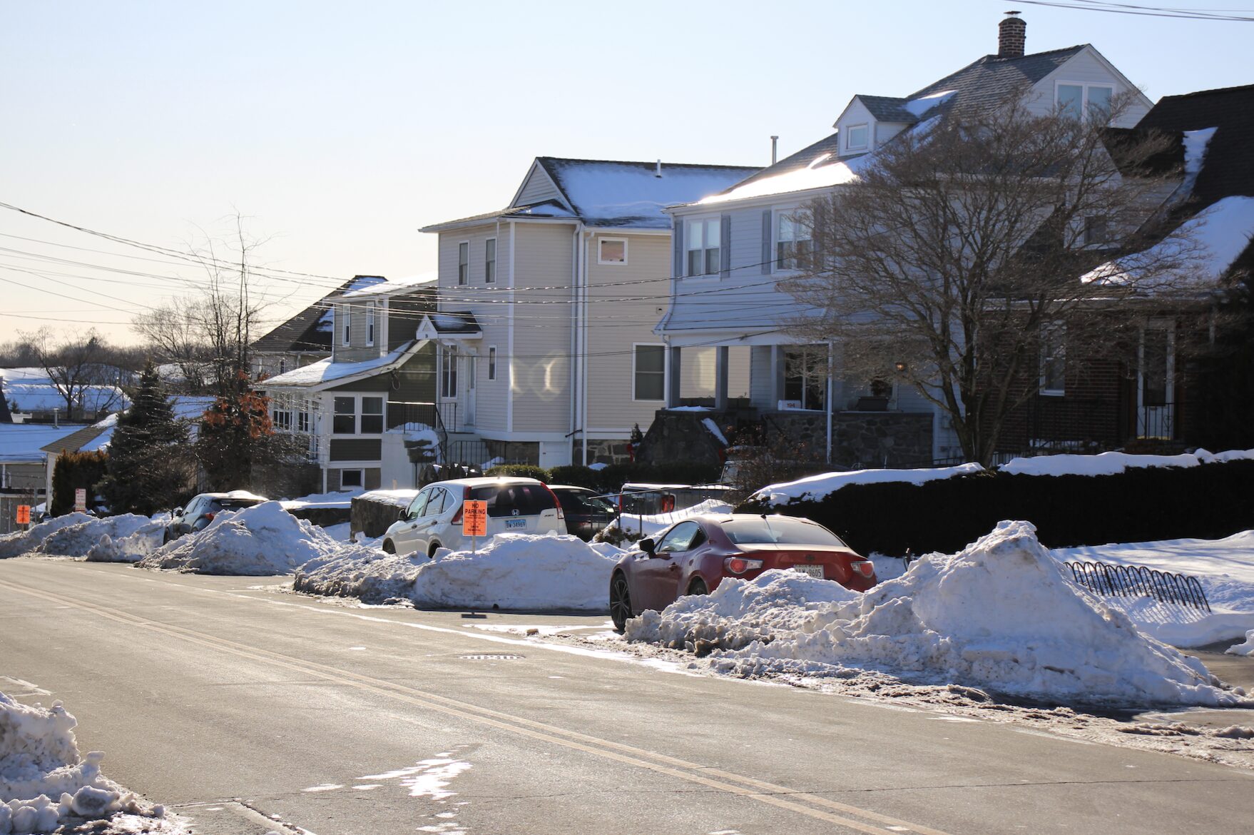 On Friday, Hamilton Avenue, an emergency snow route, was posted with bright orange signs saying, “No Parking. Immediate towing enforced. Snow removal Feb 2 and Feb 3.”