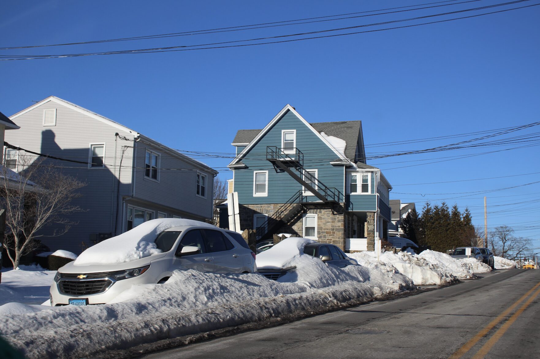 On Tuesday, as schools resumed following the snow day on Monday, one commenter posted on Greenwich Connections, “Hillside Road at GHS is dangerous right now. Northbound traffic (single lane) *must* cross the double yellow bc there isn’t enough room for a vehicle on the northbound side.”