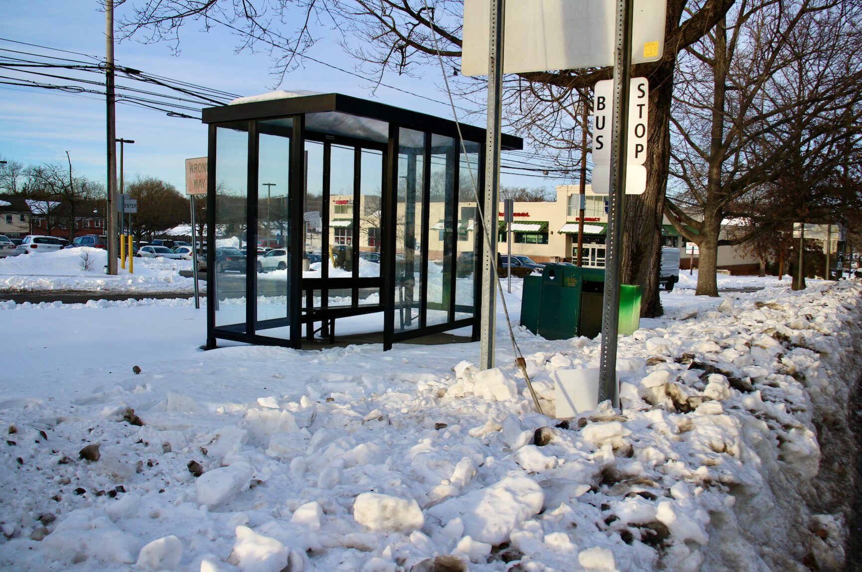 Bus shelter full of snow on Hamilton Avenue. Friday, Jan 30, 2025 Photo: Leslie Yager