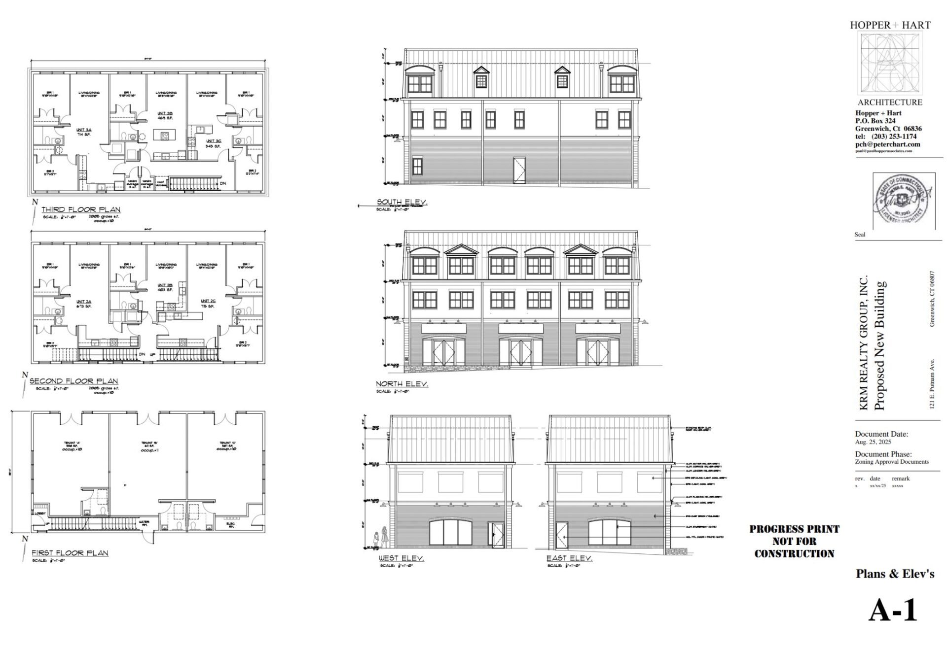 The applicant is KRM Realty LLC. The proposal is for a three-story mixed-used building with commercial/retail on the ground floor and six residential units on the second and third floors, per Section 6-110 of the town’s building zone regulations, intended to incentivize moderate income housing.