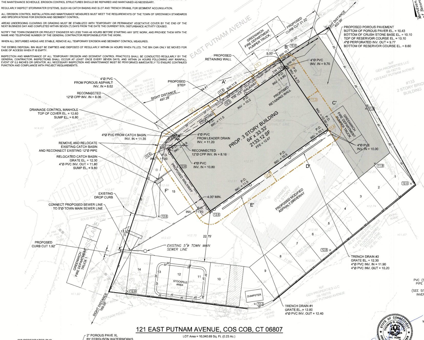 Application to Planning & Zoning for a three-story building with 6 units and commercial on the ground floor at 121 East Putnam Ave in Cos Cob.