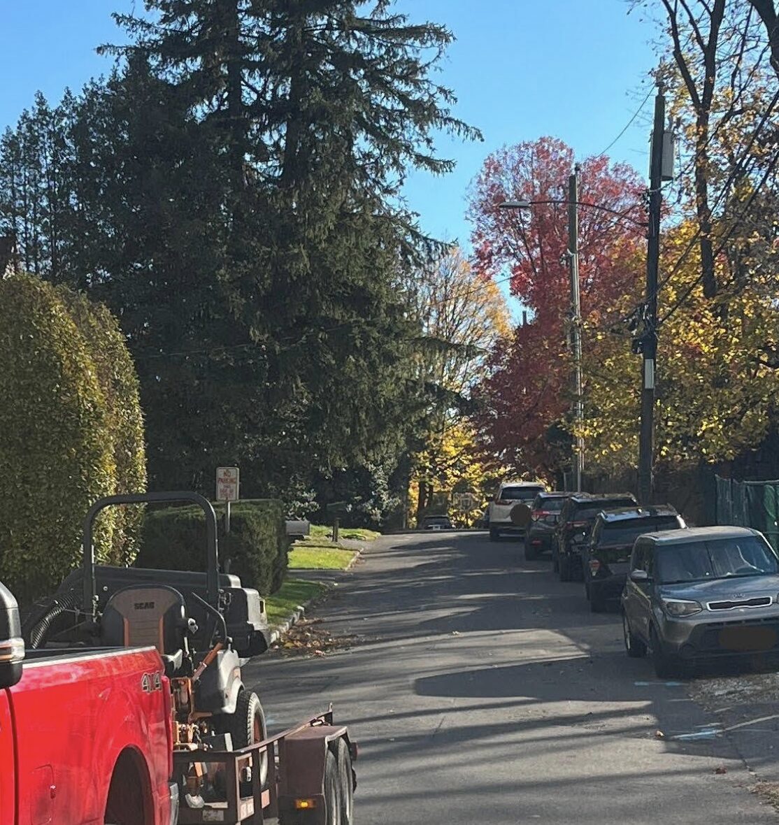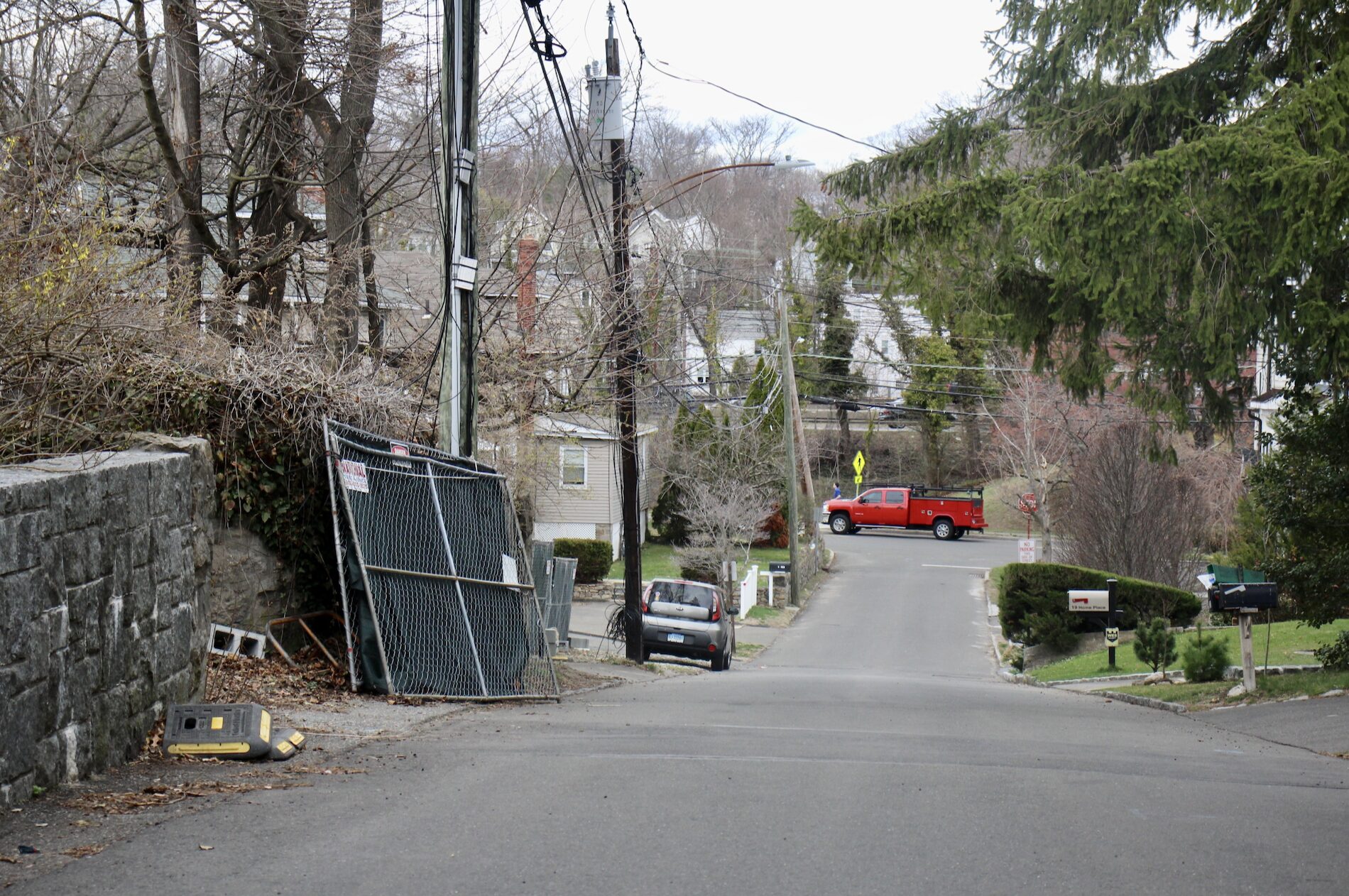 Home Place is a narrow dead end. Red truck is on Davis Ave. April 1, 2026 Photo: Leslie Yager
