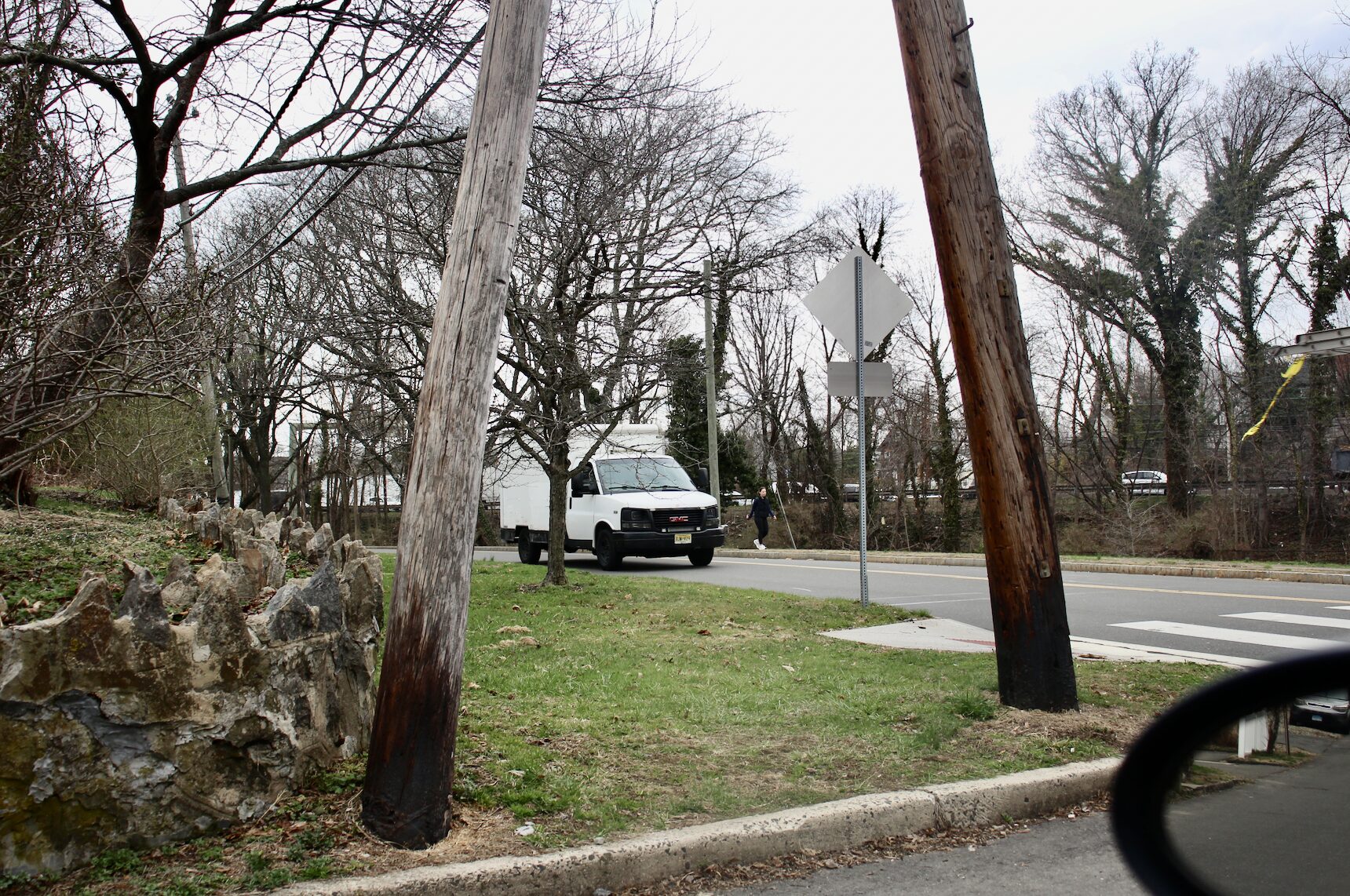 Difficult visibility of cars coming from the west on Davis Ave where the road curves. April 1, 2026 Photo: Leslie Yager