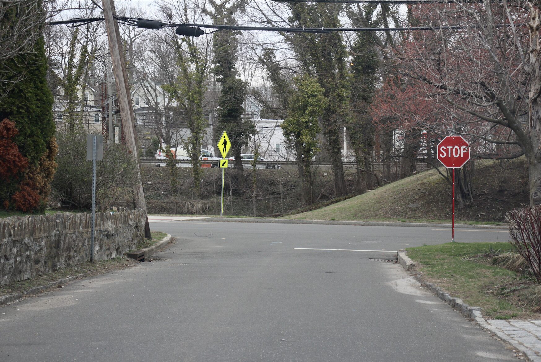 Narrow roadway at stop sign at corner of Home Place and Davis Ave. April 1, 2026 Photo: Leslie Yager