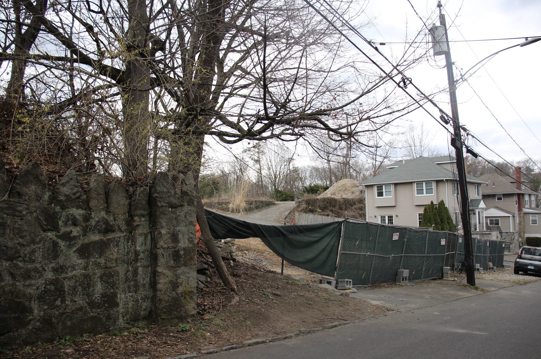 The properties to be developed are on a combined lot of 1.87 acres owned by 18 Home Place LLC, which is registered to Hon Cheung at 64 Lewis Street according to the Secretary of the State website, and 8 Home Place LLC, which is registered to Lilian Eng, 64 Lewis Street. Pictured: construction fencing at the proposed 8-30g development on Home Place and Davis Ave. April 1, 2026 Photo: Leslie Yager