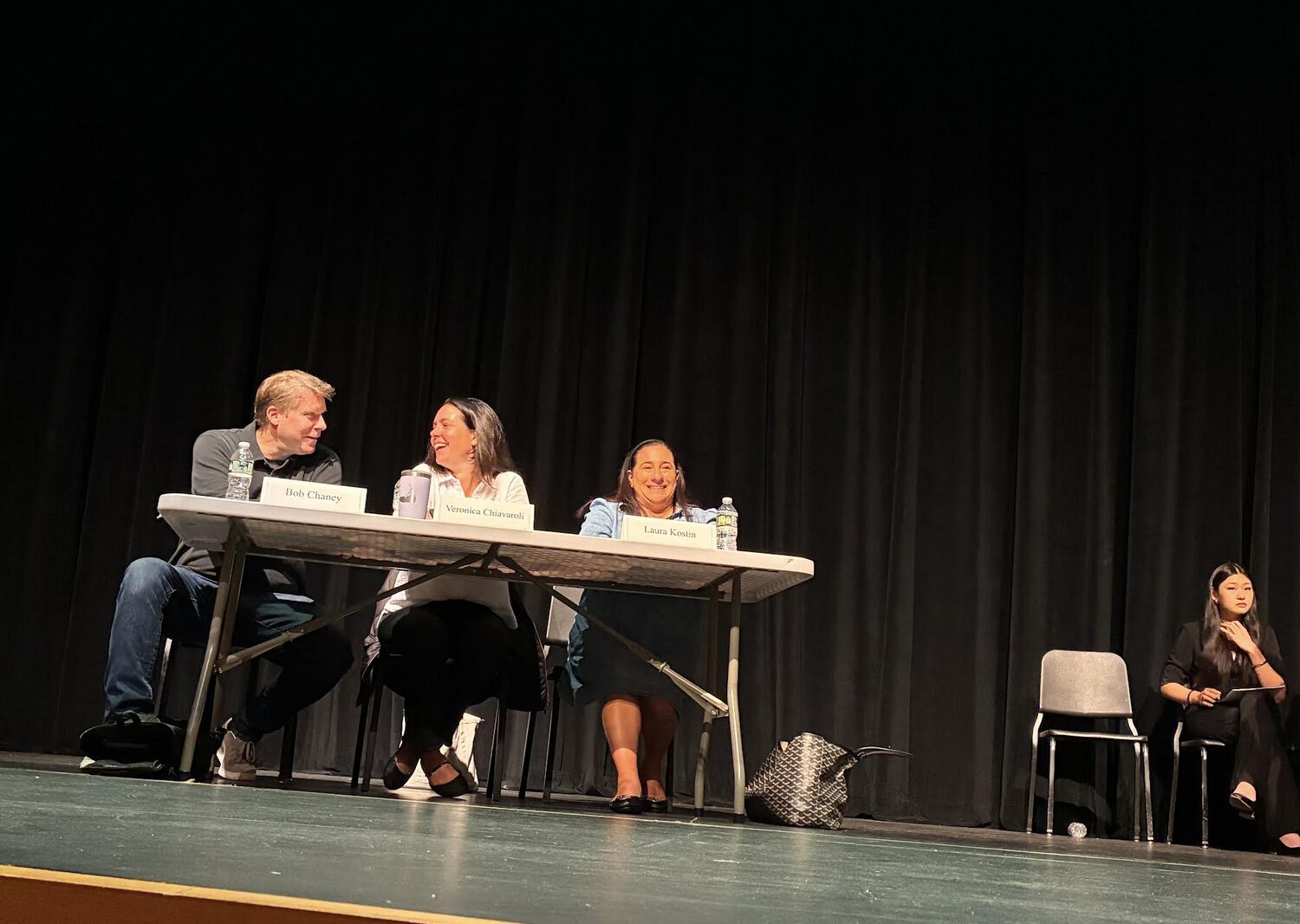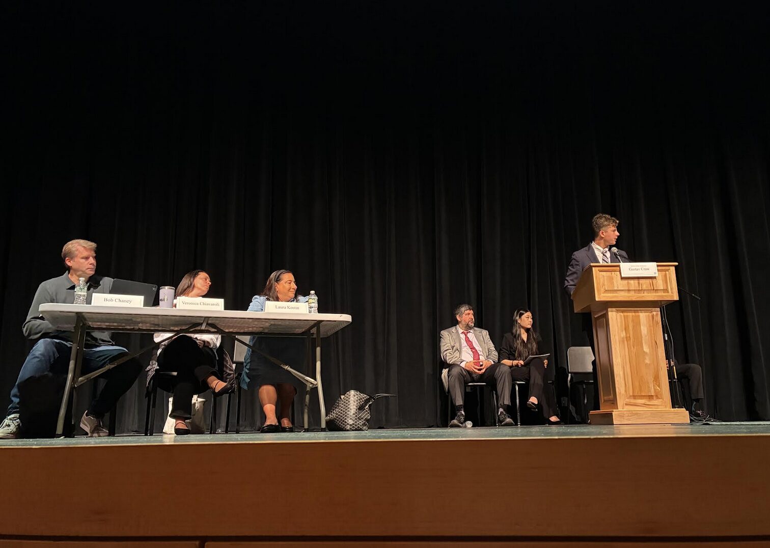 Thursday morning’s Board of Education candidate debate at Greenwich High School was organized by Aaron Hull’s We The People team of students, who came up with the list of questions that included budget cuts and school start times, class size, student absenteeism and ICE, cell phone policy, and the quality and cost of Cardinal Café food