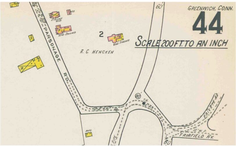 According to a letter from current owners Herbert S. and Dee Winokur, Mr. Hencken was a longtime member of the Greenwich Board of Estimate and Taxation and a partner in an insurance brokerage. The original property was about 14 acres but was subdivided into several one-acre lots.