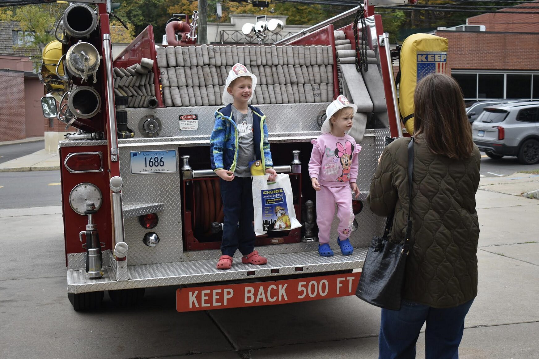 Children laughed and played in an antique fire truck, ringing the bell, and pretending to drive the rig. Families left with memories of a fun day, along with safety instructional information, a free smoke detector, and a lapel pin in the shape of a fire engine, complete with flashing lights.